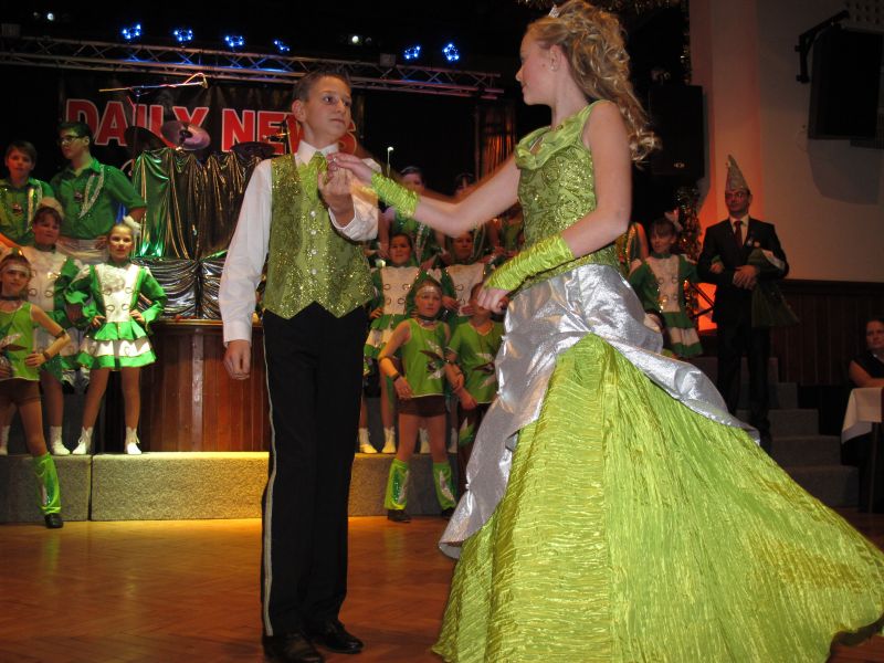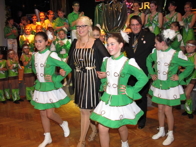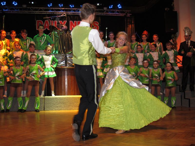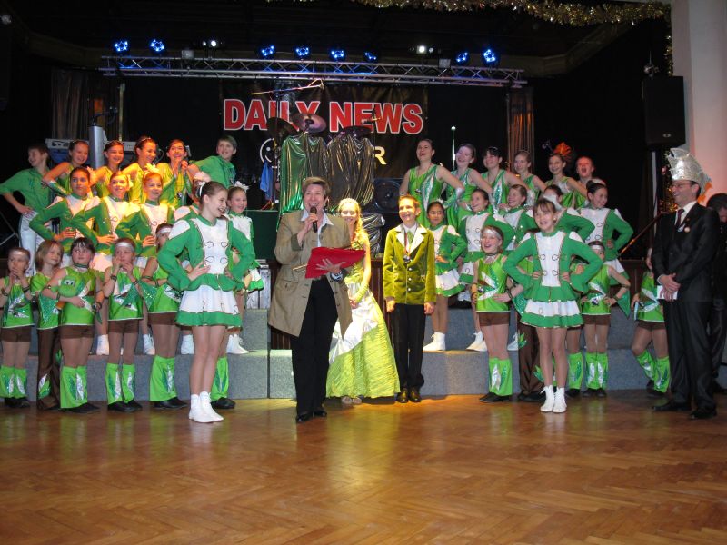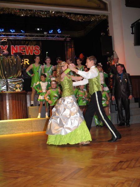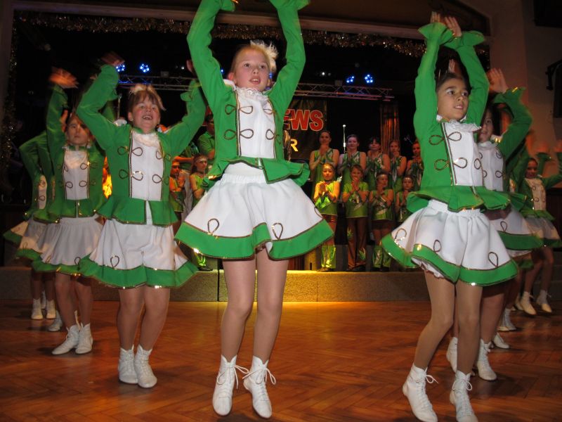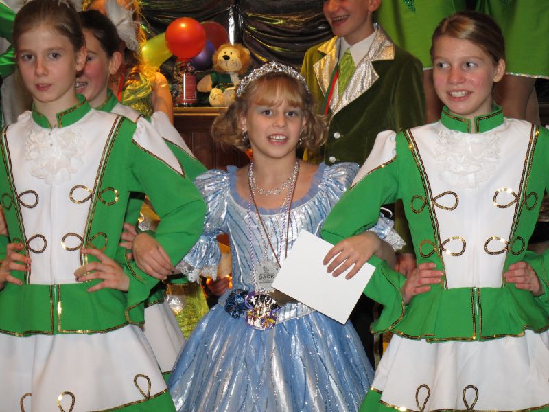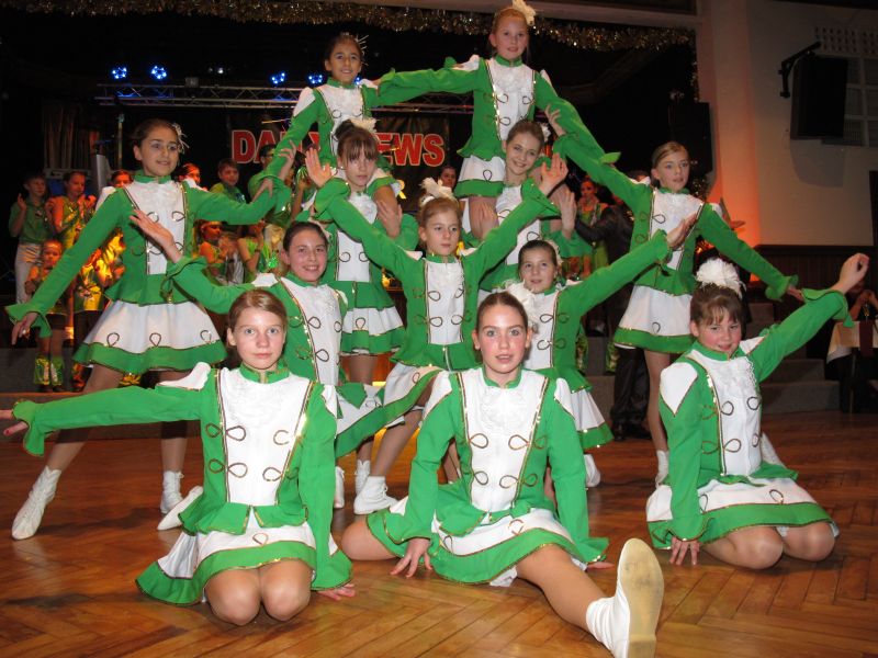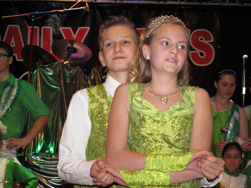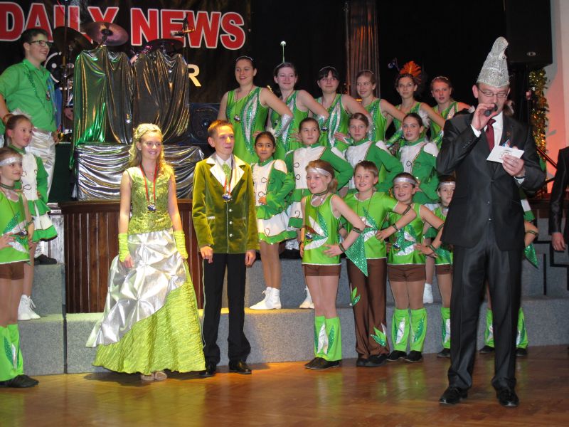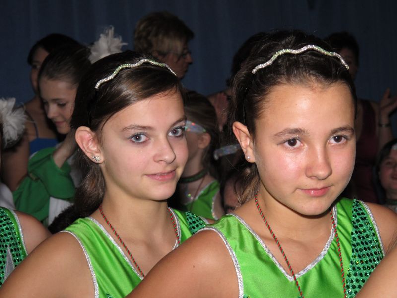 Die diesjährige Kindergarde, diesmal ganz in grün, hatte ihre einstudierten Tänze schon voll drauf. Im Gleichschritt marschierten und tanzten die kleinen Damen voller Leichtigkeit und mit einem strahlenden Lächeln auf den Gesichtern. Keine Spur von Aufregung war ihnen anzusehen und egal ob beim schlagen von Rädern, Spagaten oder waghalsigen Figuren, alles lief wie am Schnürchen.