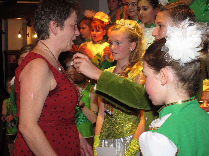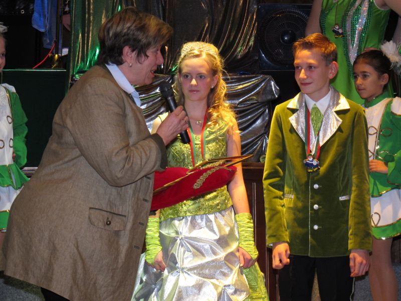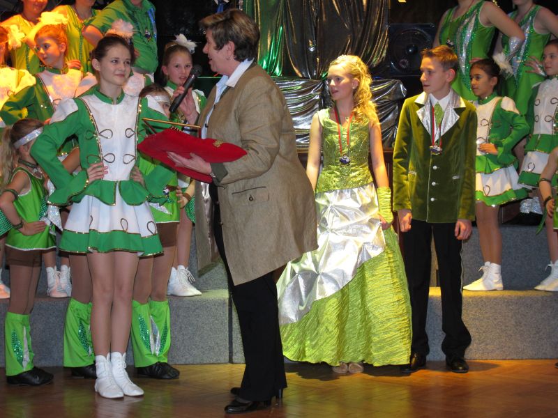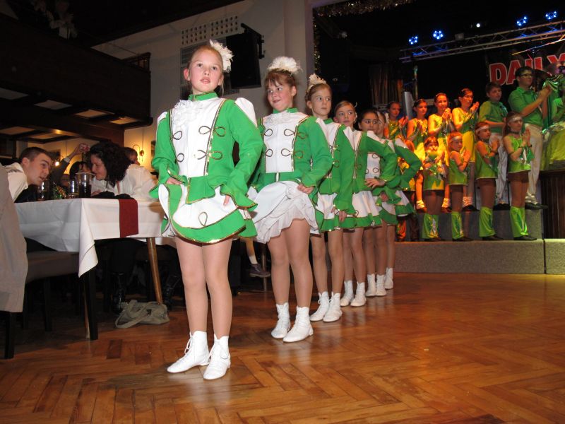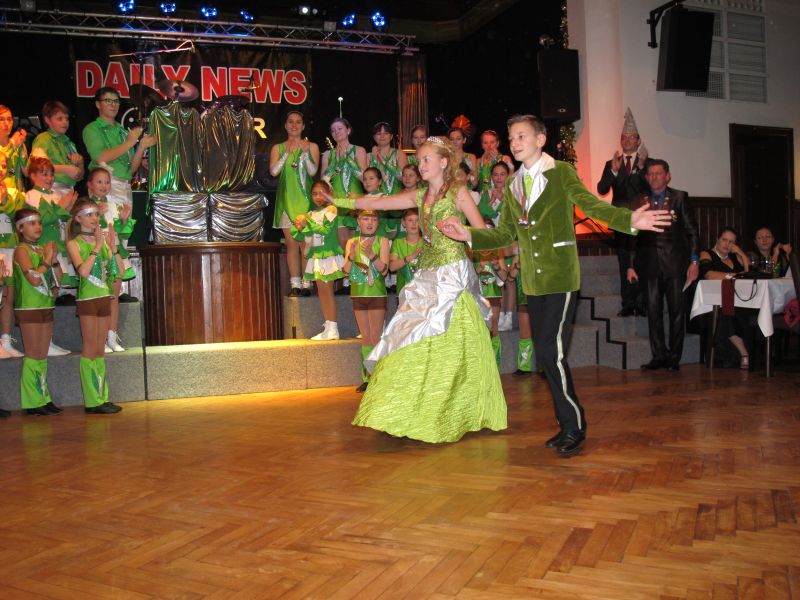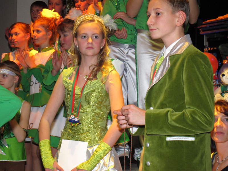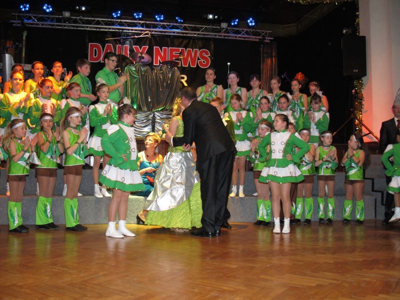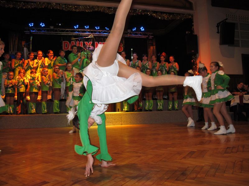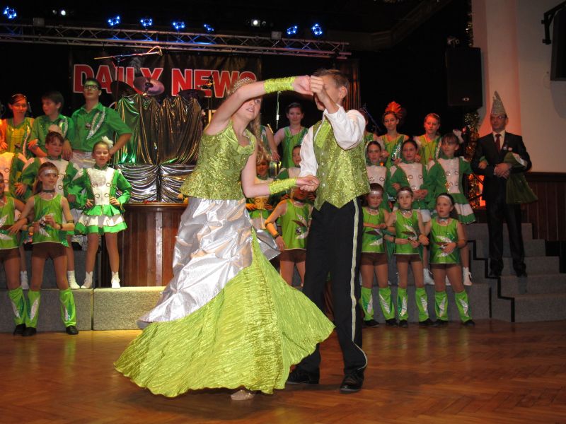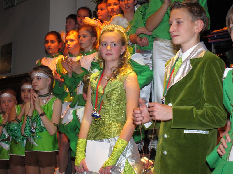 Die diesjährige Kindergarde, diesmal ganz in grün, hatte ihre einstudierten Tänze schon voll drauf. Im Gleichschritt marschierten und tanzten die kleinen Damen voller Leichtigkeit und mit einem strahlenden Lächeln auf den Gesichtern. Keine Spur von Aufregung war ihnen anzusehen und egal ob beim schlagen von Rädern, Spagaten oder waghalsigen Figuren, alles lief wie am Schnürchen.