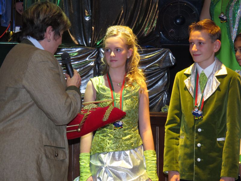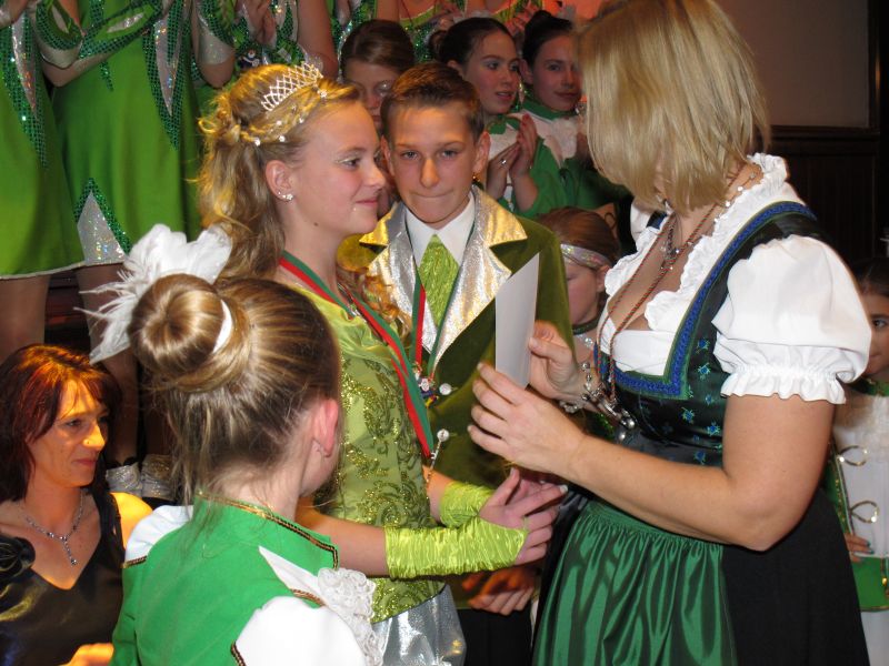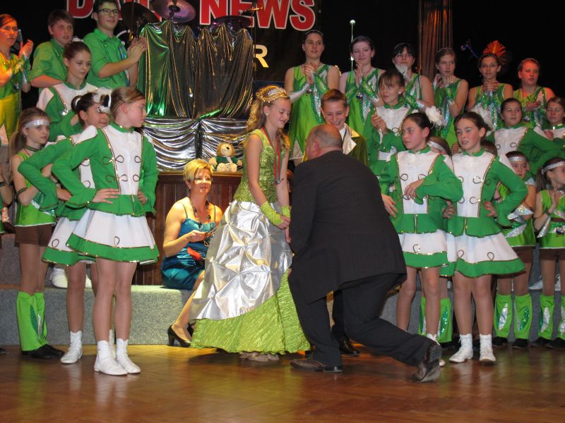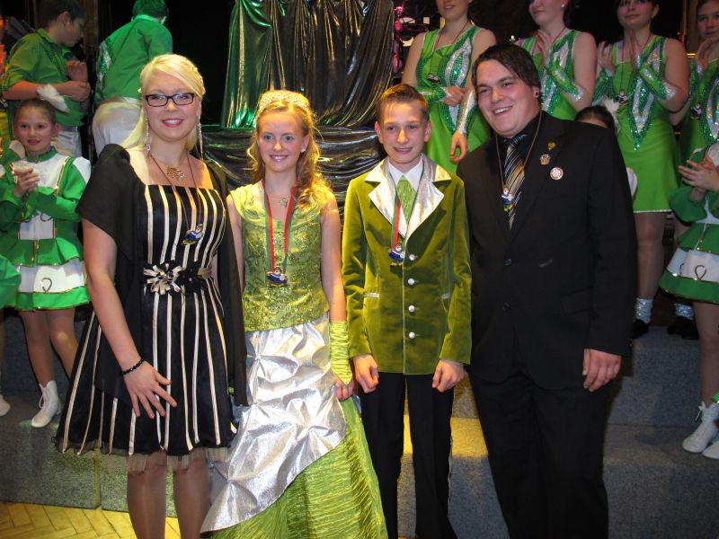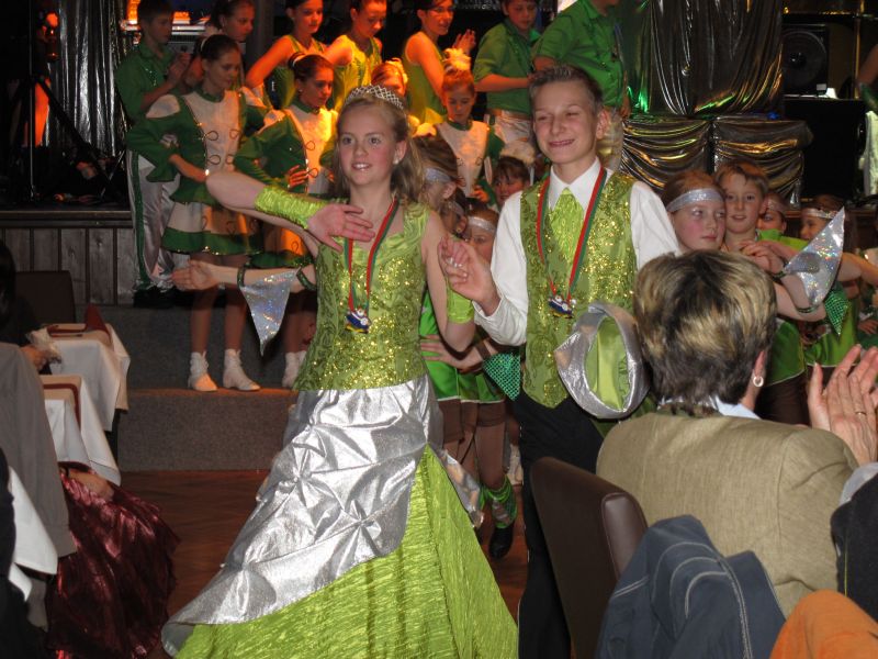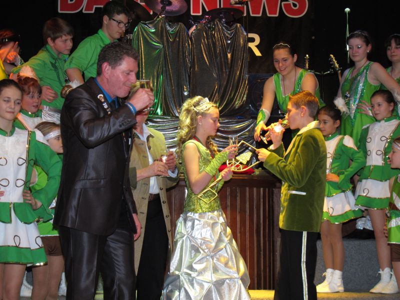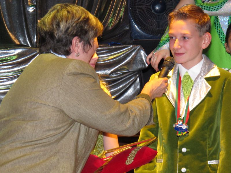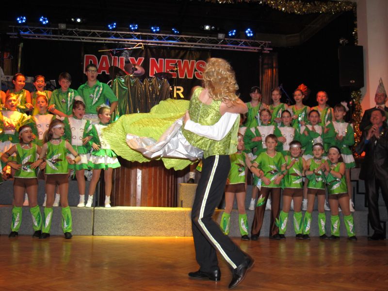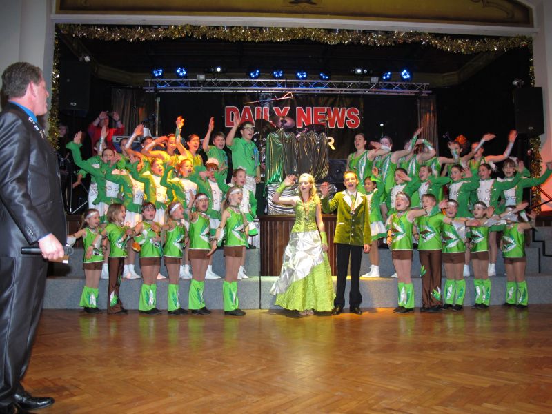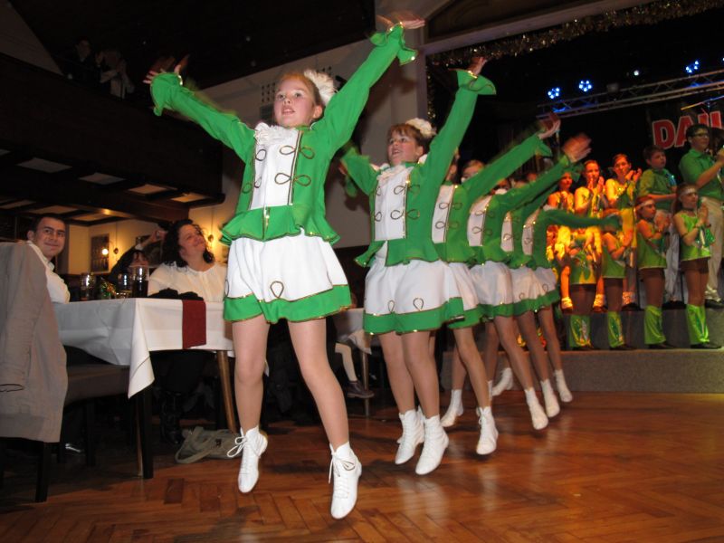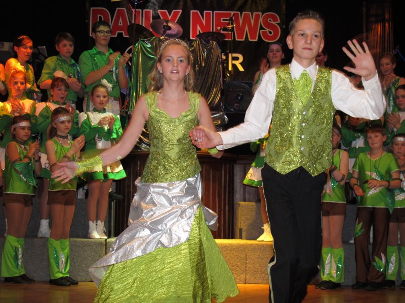 Die diesjährige Kindergarde, diesmal ganz in grün, hatte ihre einstudierten Tänze schon voll drauf. Im Gleichschritt marschierten und tanzten die kleinen Damen voller Leichtigkeit und mit einem strahlenden Lächeln auf den Gesichtern. Keine Spur von Aufregung war ihnen anzusehen und egal ob beim schlagen von Rädern, Spagaten oder waghalsigen Figuren, alles lief wie am Schnürchen.