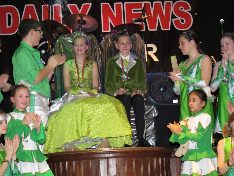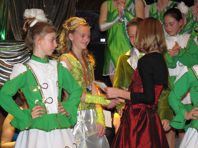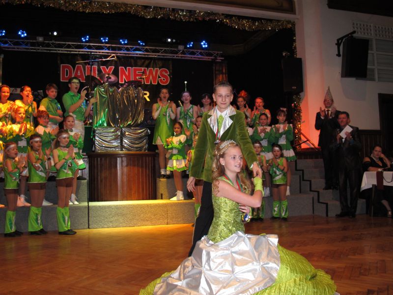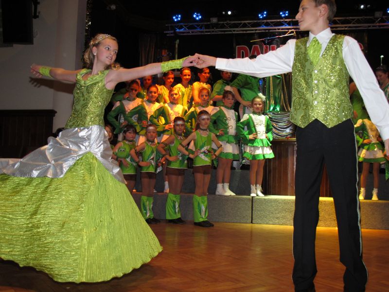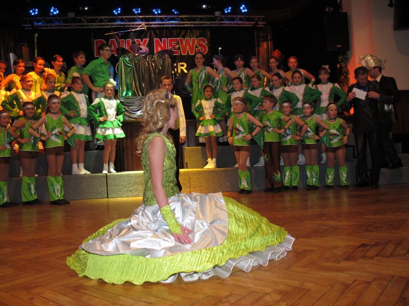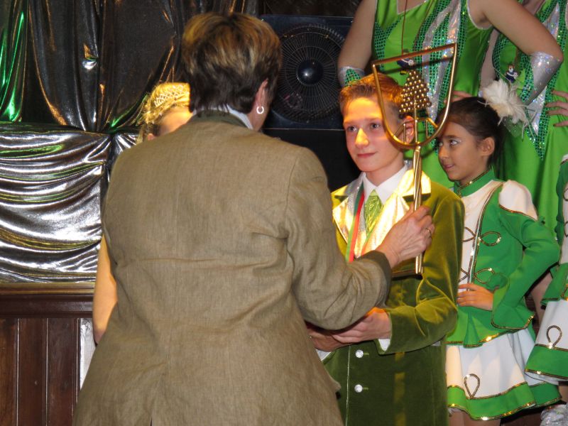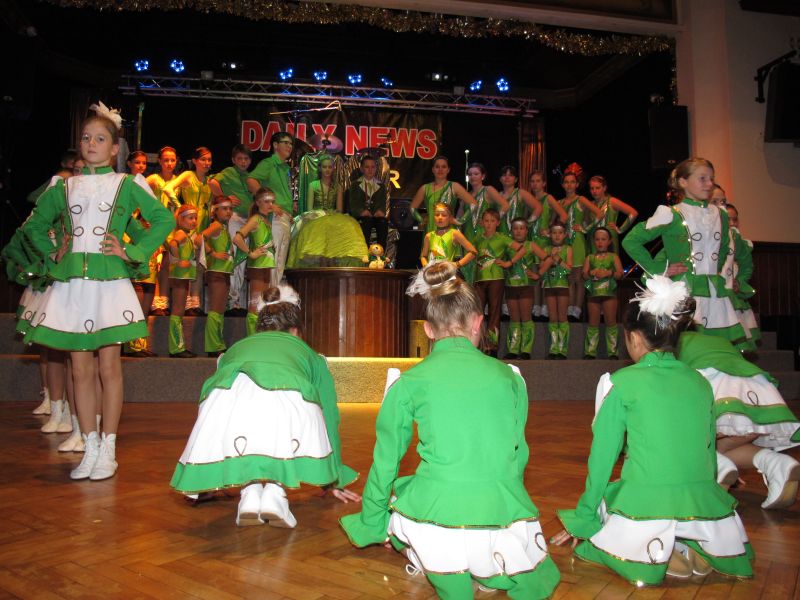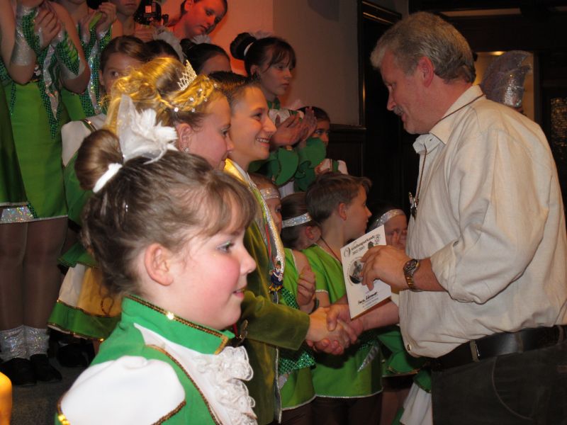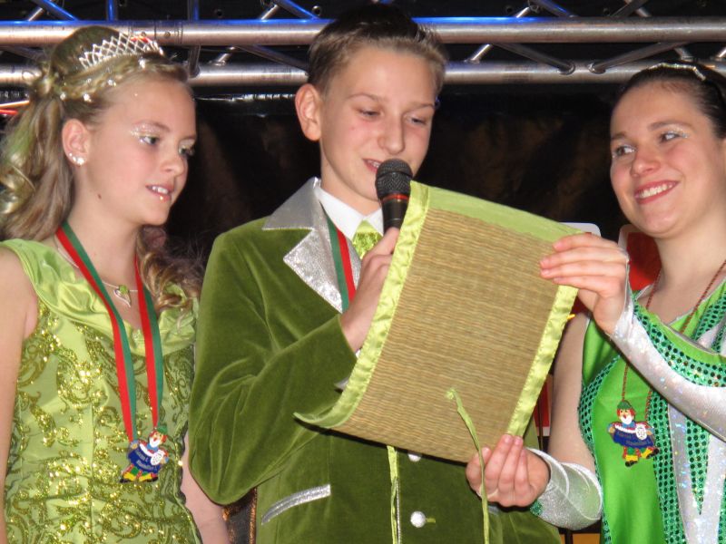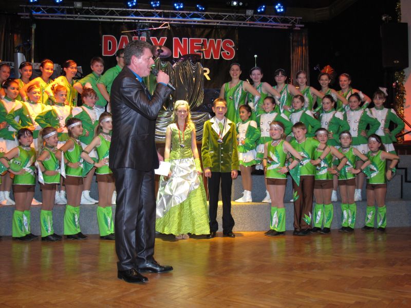 Die diesjährige Kindergarde, diesmal ganz in grün, hatte ihre einstudierten Tänze schon voll drauf. Im Gleichschritt marschierten und tanzten die kleinen Damen voller Leichtigkeit und mit einem strahlenden Lächeln auf den Gesichtern. Keine Spur von Aufregung war ihnen anzusehen und egal ob beim schlagen von Rädern, Spagaten oder waghalsigen Figuren, alles lief wie am Schnürchen.