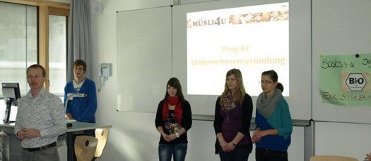 In die Grundzüge der Unternehmensgründung eingeführt wurden die Schüler dabei vom Wirtschaftsentwickler des Landkreises Pfaffenhofen, Johannes Hofner. Anhand vieler Beispiele aus der Praxis zeigte Hofner einen Weg auf, von der grundsätzlichen Entscheidung über die Erstellung eines Businessplanes bis hin zum angestrebten „Erfolgsgeschichte schreiben“. Anschließend ging es ans Eingemachte: Die Schüler durften ein Handels- und Dienstleistungsunternehmen gründen, welches auf Müsli zum Selbstmischen spezialisiert sein sollte. „Dazu beleuchteten die Groß- und Außenhandels- sowie Bürokaufleute in sieben Gruppen verschiedene Aspekte der Unternehmensgründung wie beispielsweise Produkt- und Preisgestaltung, Marketing, Distribution und Finanzierung. Außerdem war eine Gruppe mit der Videokamera unterwegs und befragte Passanten bezüglich deren Müsli-Kaufverhaltens“, so Johannes Hofner.