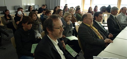 In gespannter Erwartung der Präsentation (1. Reihe v.l.) Karlheinz Amler (Berufsschule Eichstätt), Georg Stark (Landkreis Eichstätt), Johannes Hofner (Landkreis Pfaffenhofen), Thomas Raffalt (Sparkasse Eichstätt) und Wendelin Ferstl (Berufsschule Eichstätt).