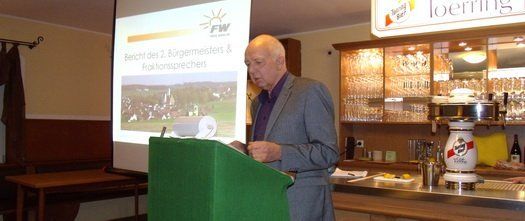Bei der Jahreshauptversammlung der Freien Wähler gab Rohrbachs 2. Bürgermeister, Peter Otto, einen Überblick zum kommunalen Geschehen. Er sprach den Unmut der Bürger über die Baustellen an, warb aber für Verständnis und hob die gute wirtschaftliche Situation Rohrbachs hervor, die es ermögliche, diese Baumaßnahmen überhaupt durchführen zu können, wie Wasser- und Abwasserleitungen oder die Kinderkrippe.