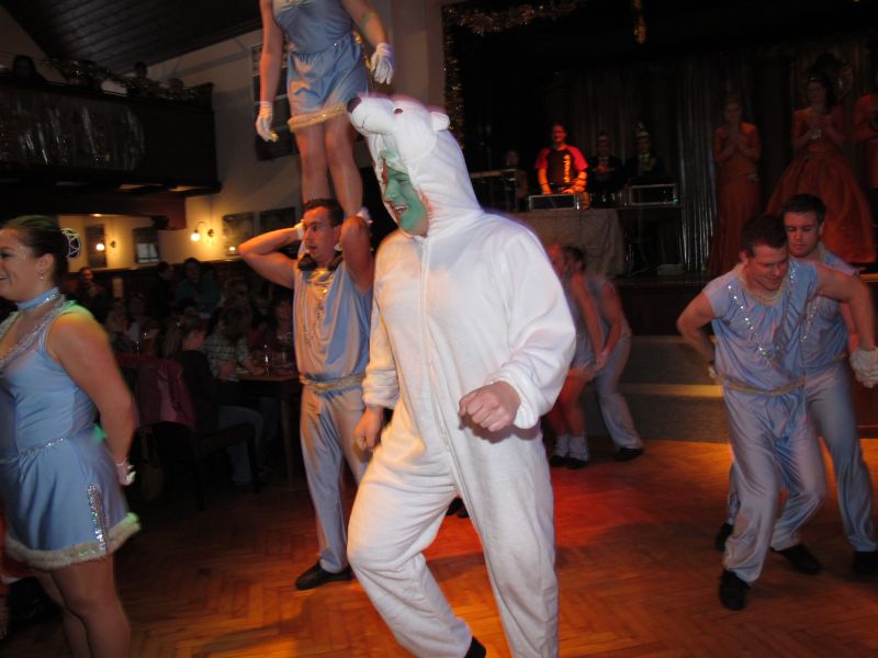 Um 16.00 Uhr folgten die Narrhalla Nandlstadt, Mauern und Mainburg, auch wieder abwechselnd mit Show- und Standardteil. Zu sehen gab es alles vom Eisbären mit Gefolge bis zu Dschungelbewohnern mit ihren Buschtrommeln.