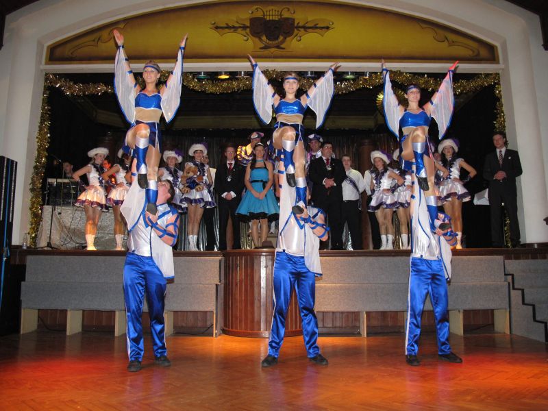 Die Standardtänze waren bei allen Garden sehr schön anzuschauen, waren aber doch meist sehr ähnlich, doch bei den Showteilen, da war der Fantasie keine Grenze gesetzt. Dabei wurden die Mädels teilweise so hoch geworfen, dass man um die Deckenbeleuchtung fürchten musste. Immer noch schnellere Tänze und noch höhere Würfe und Menschentürme wurden gezeigt.