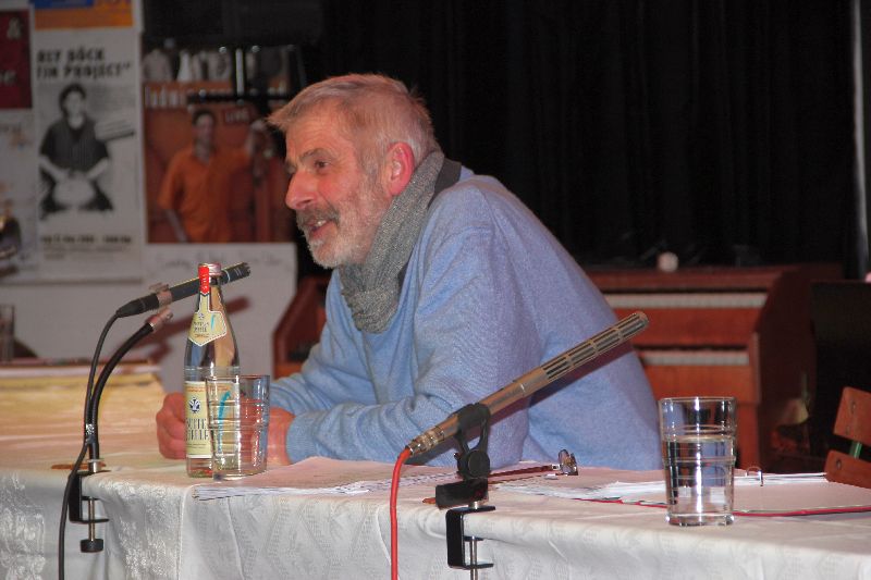 Musikalische Übergänge zwischen den einzelnen Kapiteln des Programms lieferte Christian Willisohn am Klavier, der einmal nicht Blues und Boogie Woogie bot, sondern "von guten und von schlechten Zeiten" sang.
