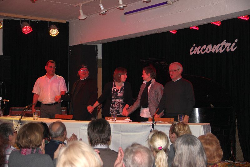 "Wie sieht sie aus, die Zeit?" fragte Vorstand Hans Dollinger in seiner Begrüßung der Gruppe 'Lesezeichen' am Samstagabend im Incontri. "Hat sie Falten? Ist sie blond?" Nun: wie die Zeit aussieht wissen die Besucher der Lesestunde immer noch nicht, sie haben aber viele Facetten derselben auf eine äußerst humorvolle und abwechslungsreiche Art und Weise präsentiert bekommen.