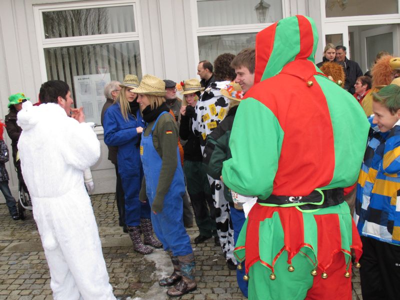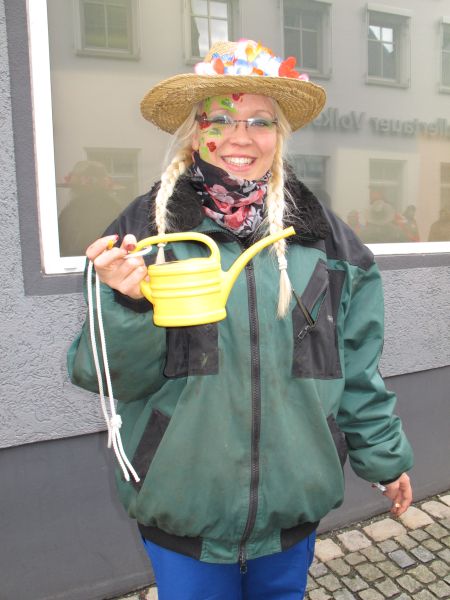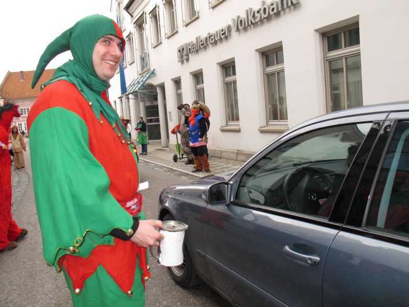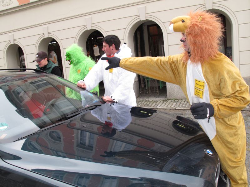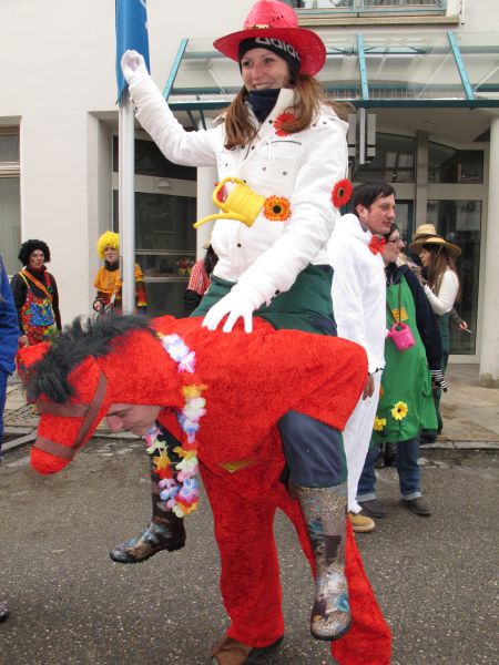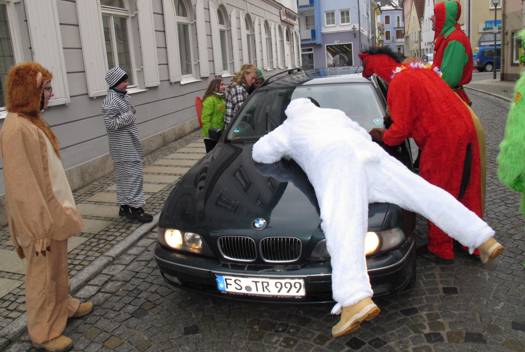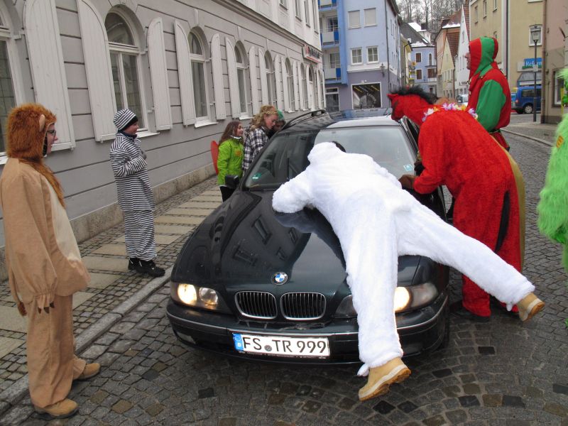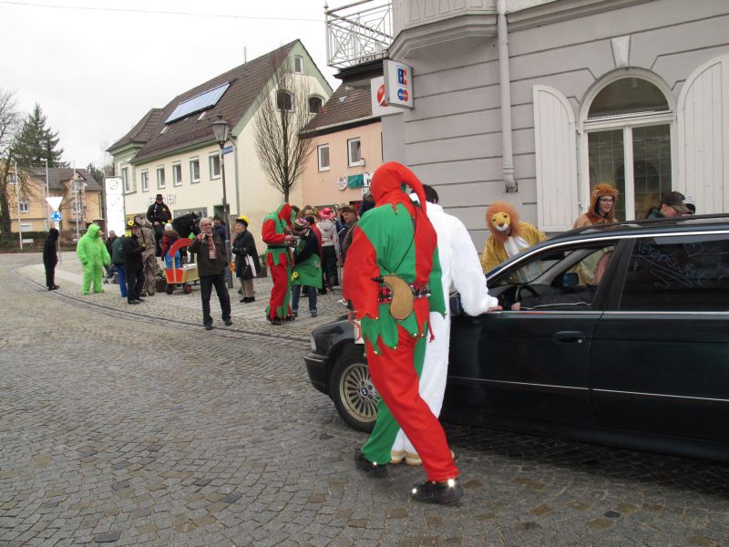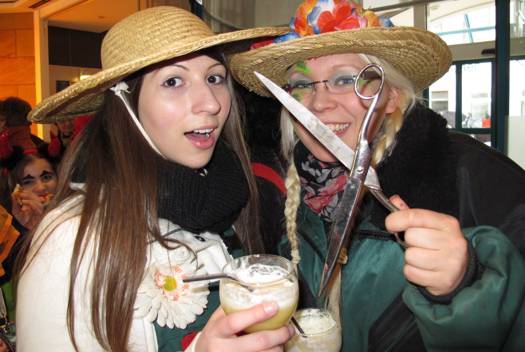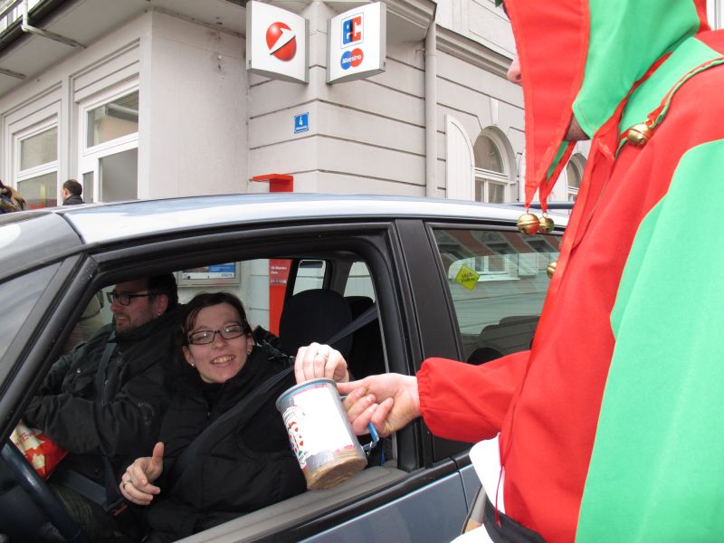 Prinzessin Simone I. hatte diesmal in ihrem Handtäschchen nicht wie üblich Puder für ihr Näschen, sondern eine laaaaaange Scheeeeere, mit der sie allen Anzugträgern zu Leibe rückte und sie um eine halbe Krawattenlänge erleichterte. Die Autofahrer waren nicht ganz so begeistert von den vielen Narren auf der Straße, denn freies Geleit gab es nur für die, die Weggeld bezahlten, was die Allermeisten aber mit Humor nahmen.