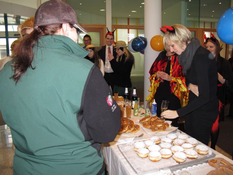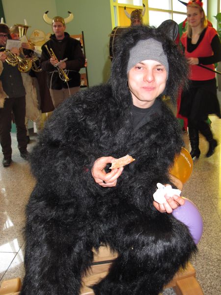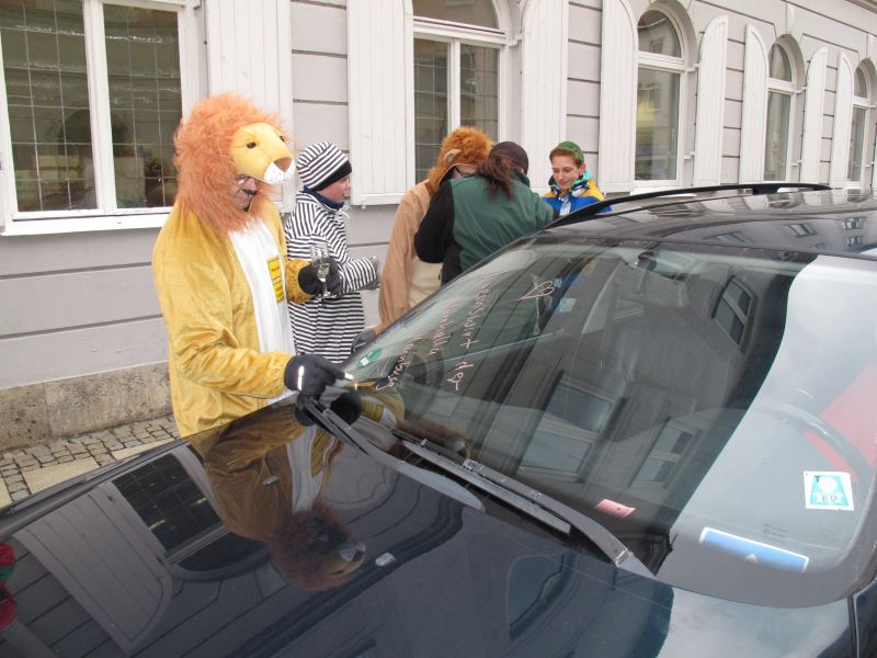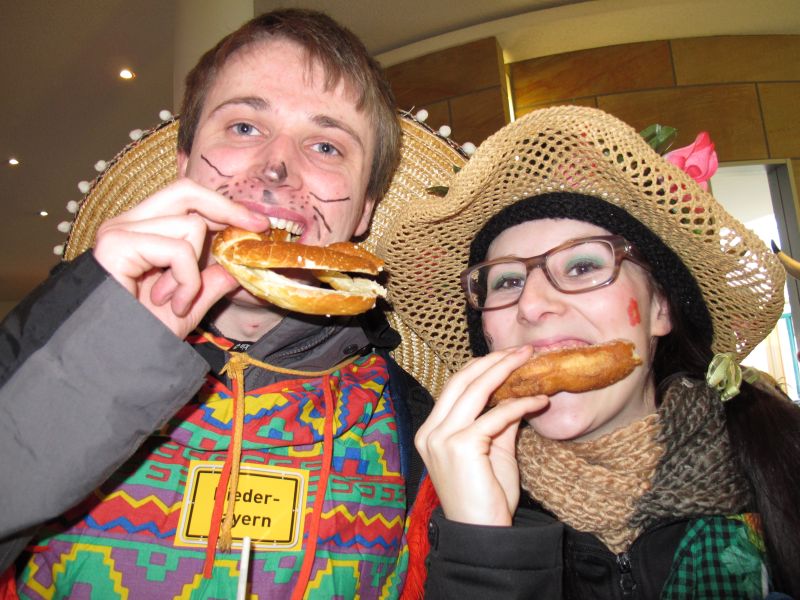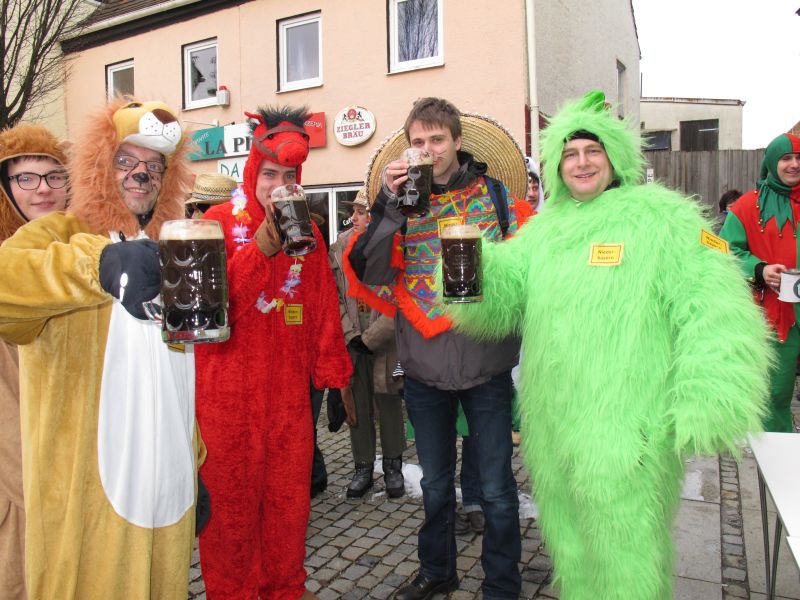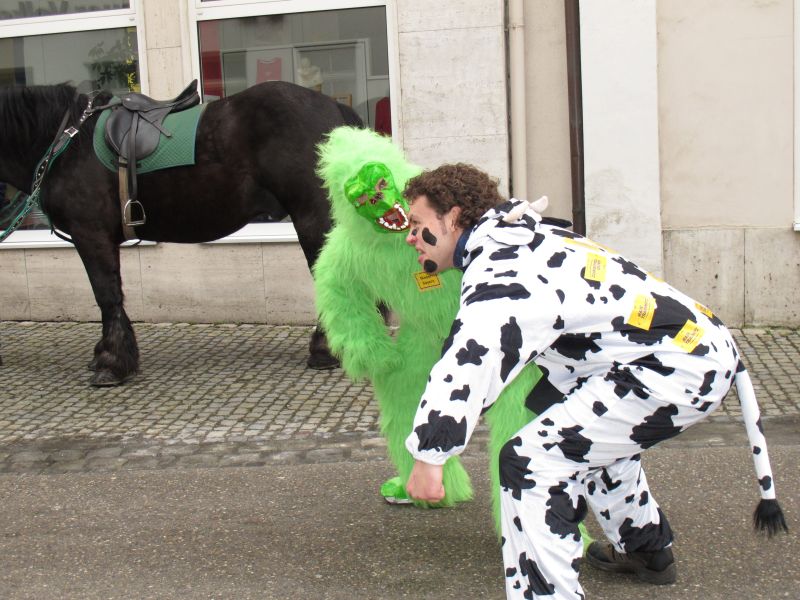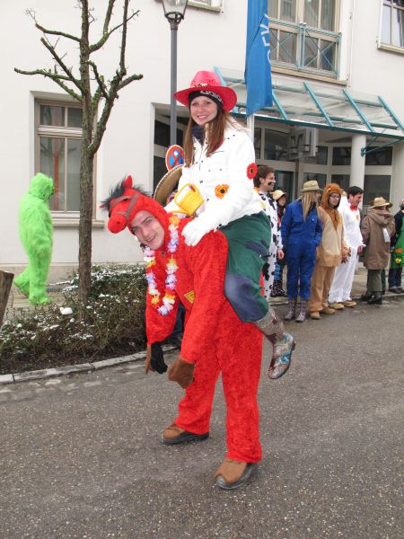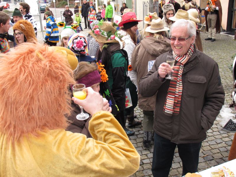 Prinzessin Simone I. hatte diesmal in ihrem Handtäschchen nicht wie üblich Puder für ihr Näschen, sondern eine laaaaaange Scheeeeere, mit der sie allen Anzugträgern zu Leibe rückte und sie um eine halbe Krawattenlänge erleichterte. Die Autofahrer waren nicht ganz so begeistert von den vielen Narren auf der Straße, denn freies Geleit gab es nur für die, die Weggeld bezahlten, was die Allermeisten aber mit Humor nahmen.