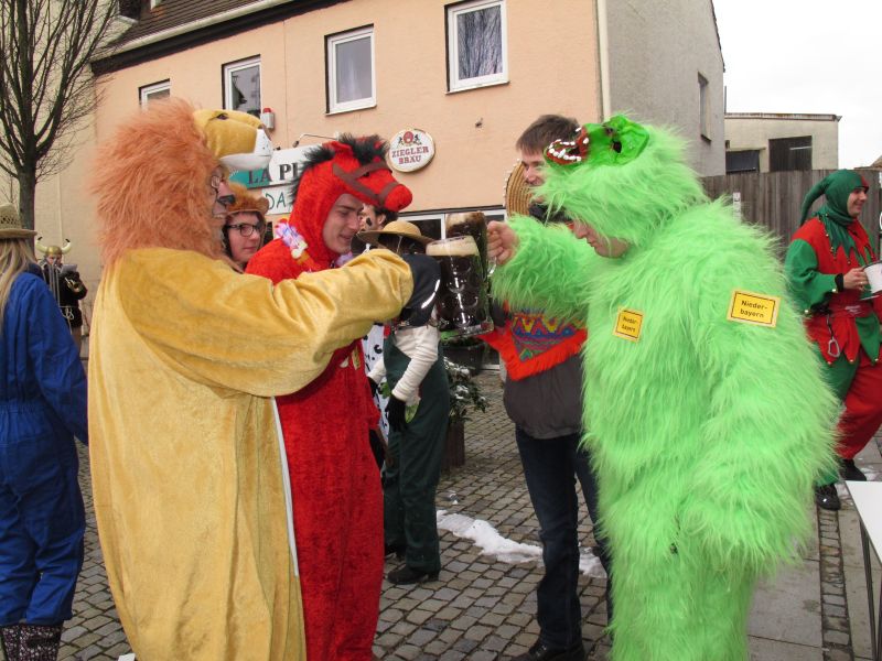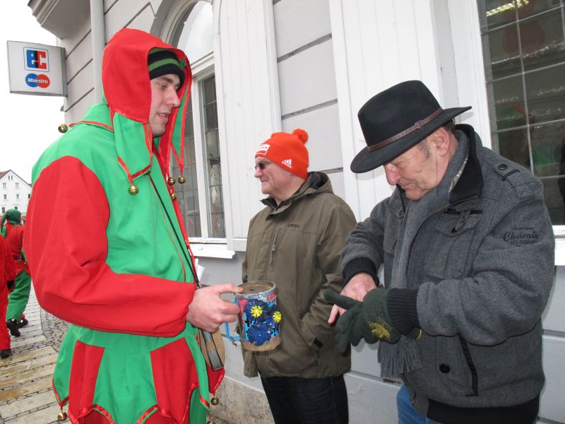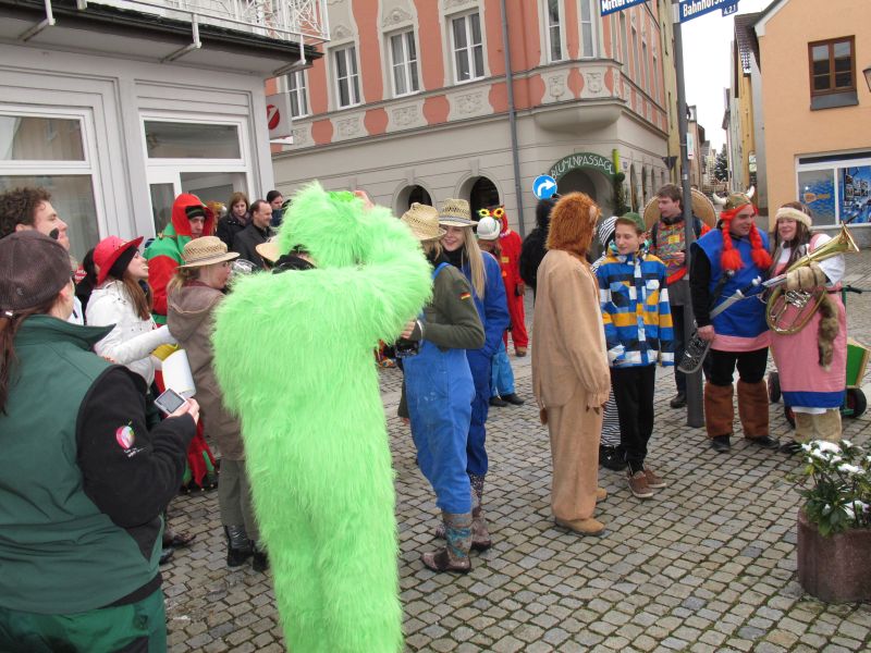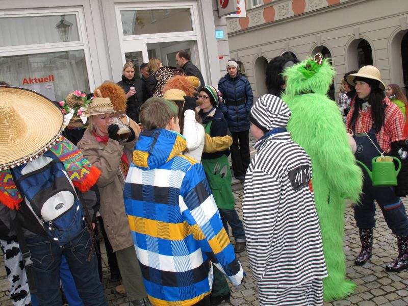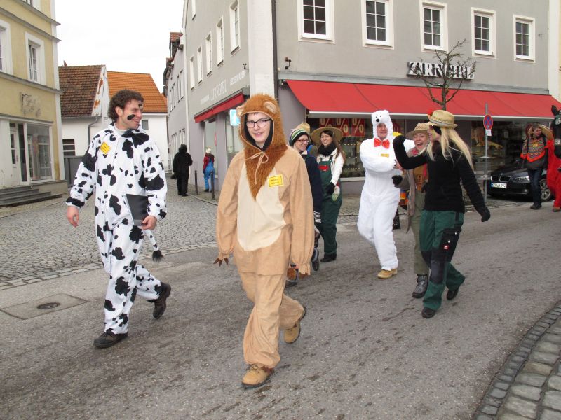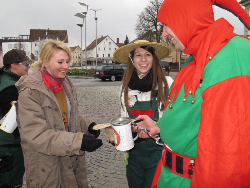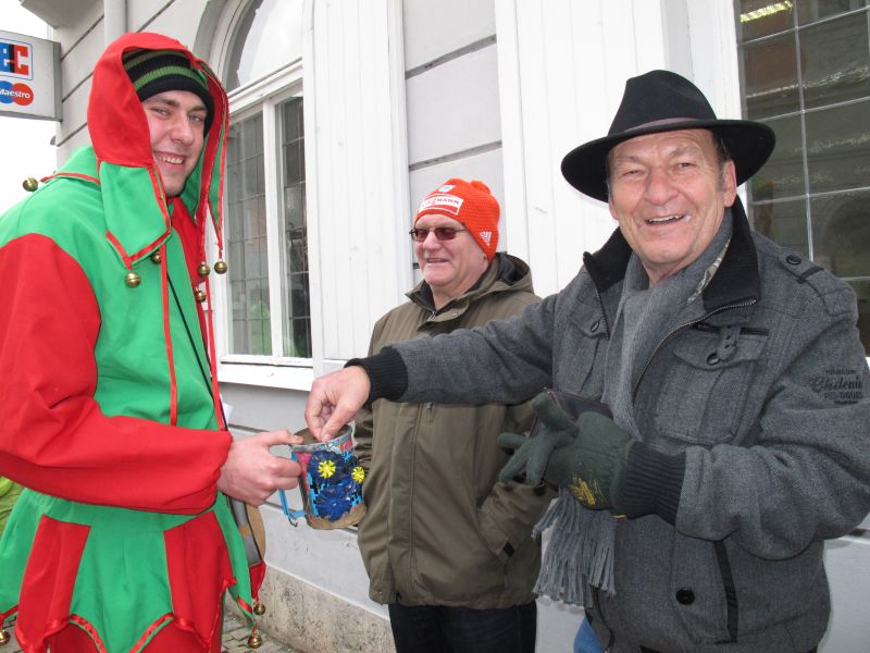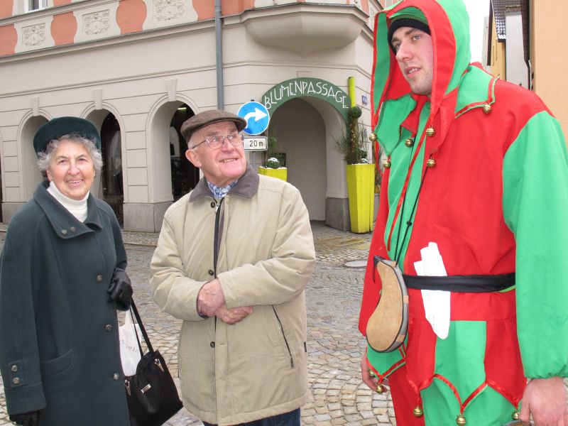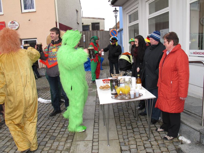 Um 13.30 Uhr starteten sie vom Reisebüro Stanglmeier und zogen dann einmal durch die Innenstadt und kehrten dabei alle paar Meter ein. Egal ob in der Sparkasse, der Volksbank, der Hypo-Vereinsbank, dem Café Lutzenburger, der Verwaltungsgemeinschaft u.v.a., überall wurden sie mit großem Hallo begrüßt und wurden ordentlich bewirtet.