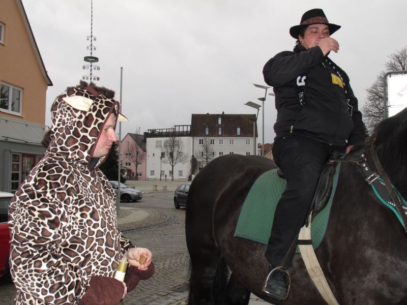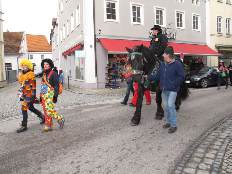 Der Prinz kam zwar nicht auf einem weißen Schimmel angeritten, sondern auf einem schwarzen, lammfrommen „Ackergaul“, was aber der guten Stimmung keinen Abbruch tat. Außerdem hat Prinz Florian ja schon seine Prinzessin erobert und diese folgte ihm auf dem Fuß, wie auch die gesamte närrische Gefolgschaft der Narrhalla Mainburg.