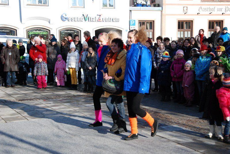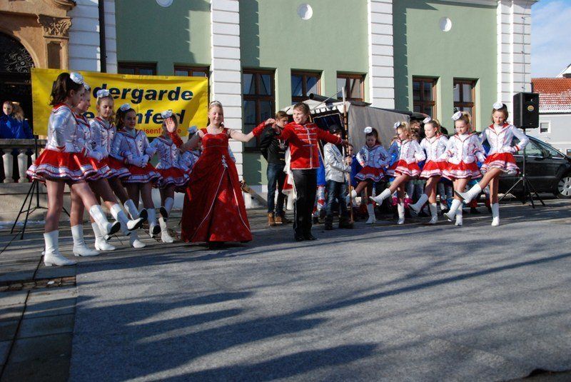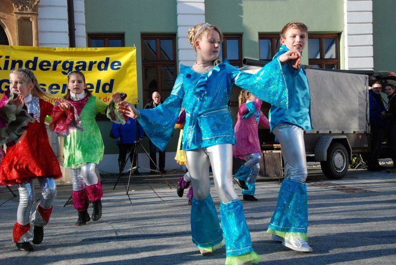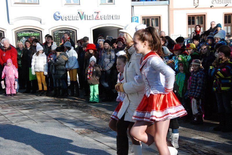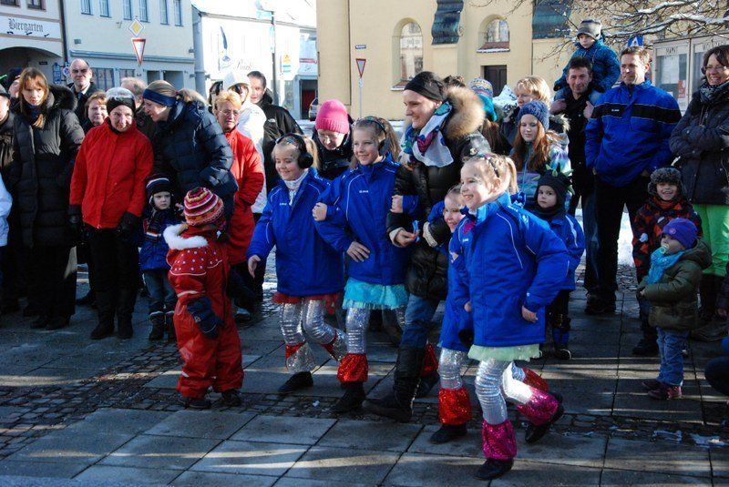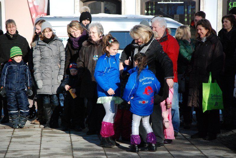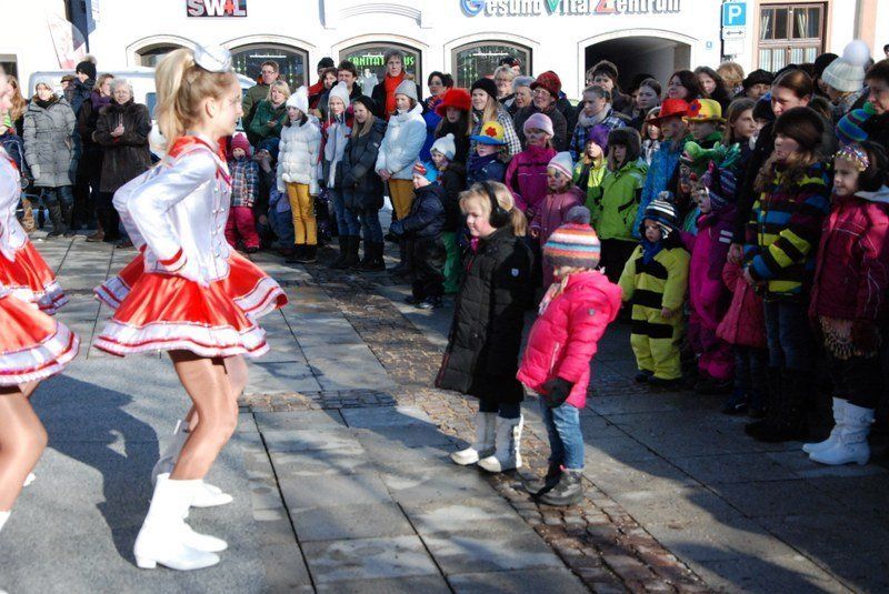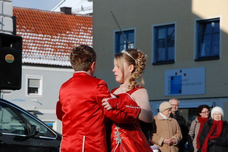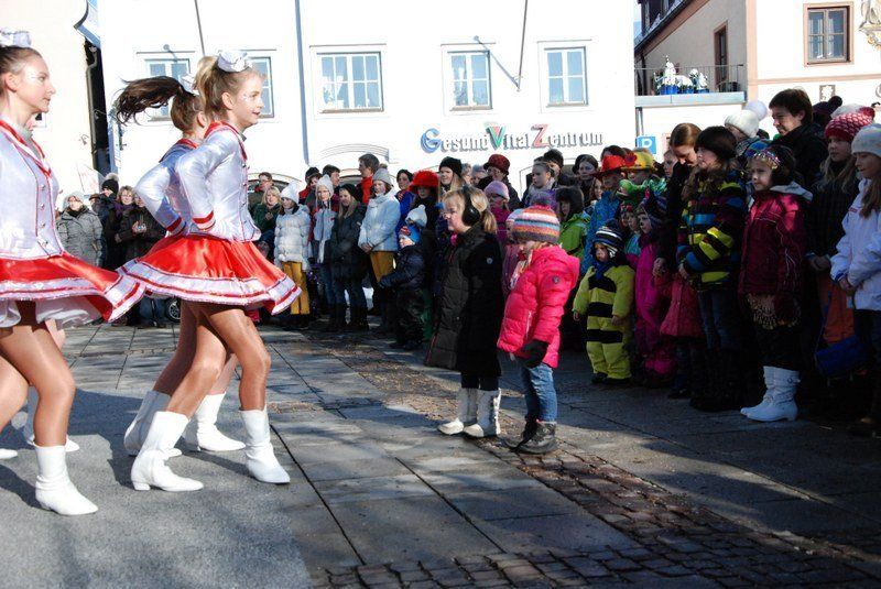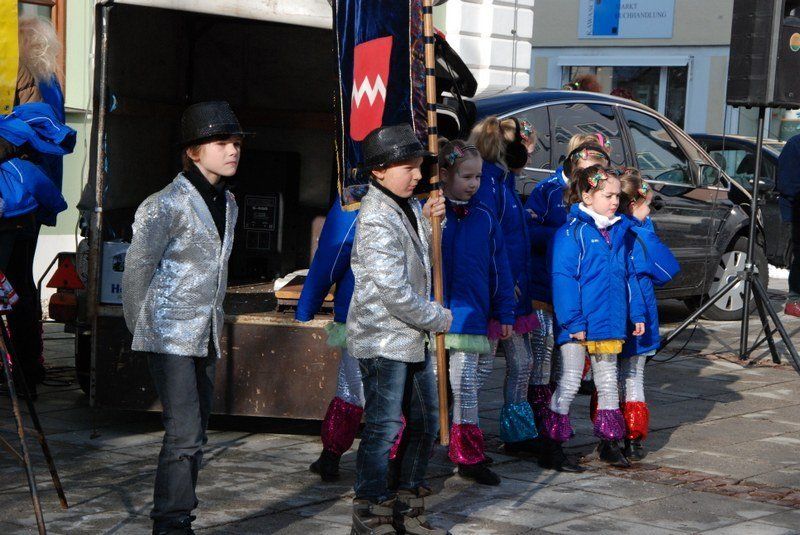 Eines der Highlight war die Choreographie, die die "Minis" in ihren schimmernden Glitzerkostümen zum Sound von "Abba" hinlegten. Zwischen den Vorführungen war das Prinzenpaar gefordert. Es wurden fleißig Orden verteilt. Zahlreiche Marktbewohner, darunter viele Kinder, hatten an diesem sonnigen Februarnachmittag den Weg zum Rathausplatz gefunden - und sparten nicht mit Applaus. Unsere Fotografin hat einige Impressionen diese schönen Faxchingsereignisses im Bild festgehalten: