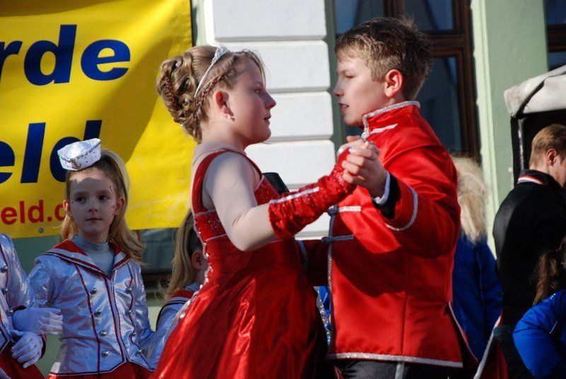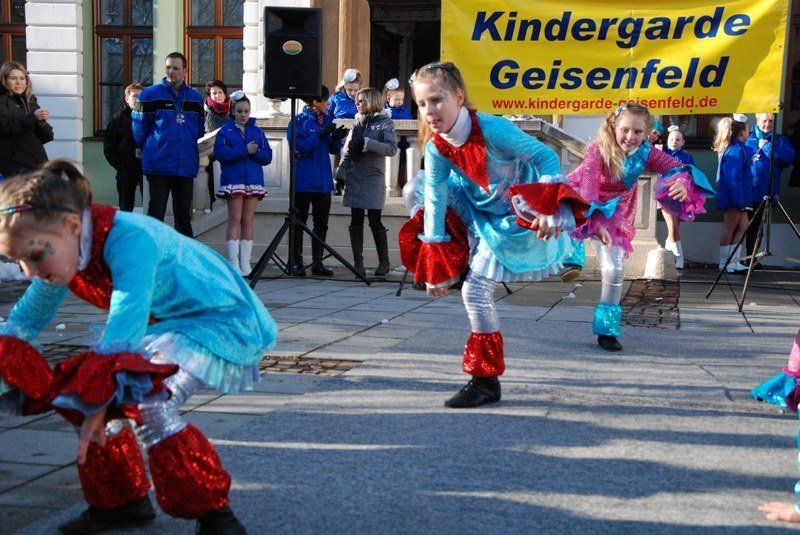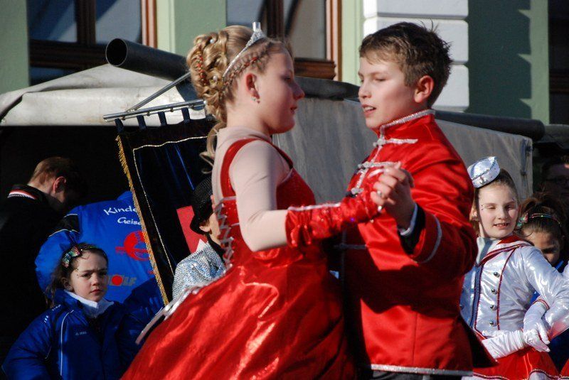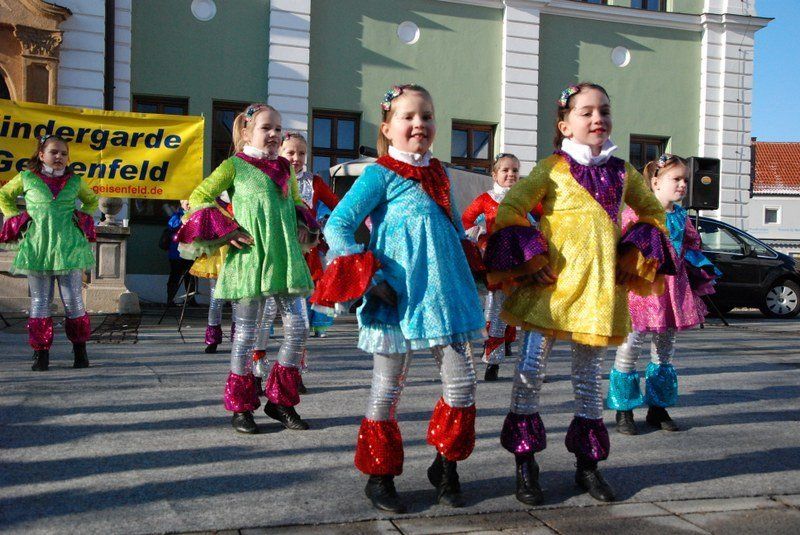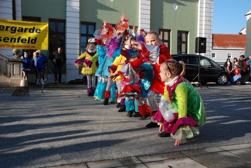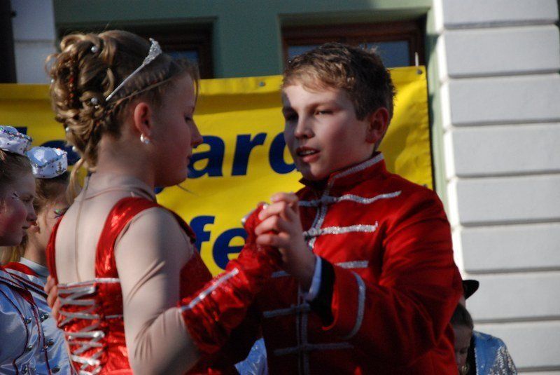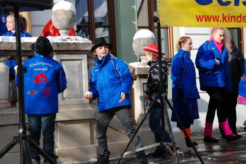 Julia I. und Michael I. können stolz sein: Die Geisenfelder Kindergarde mit ihren an die fünfzig Mitwirkenden legte auf dem Wolzacher Rathausplatz ein vollendetes Gastspiel hin.