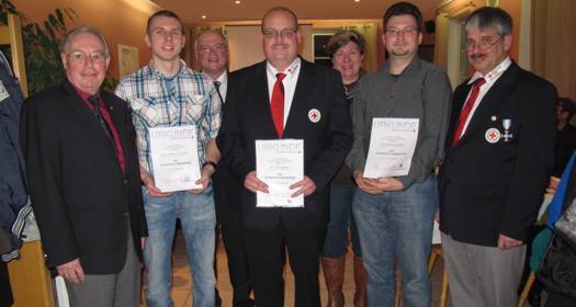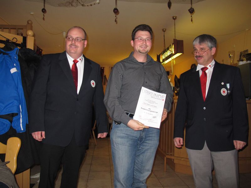 Herrn Klaus Massier, der schon seit 15 Jahre als Rettungsdiensthelfer tätig ist, Herrn Andreas Kichlechner und Herrn Dieter-Josef Maier, die immerhin schon seit 5 Jahren als Rettungssanitäter tätig sind, konnte die Dienstzeitspange und jeweils eine Urkunde persönlich überreicht werden.