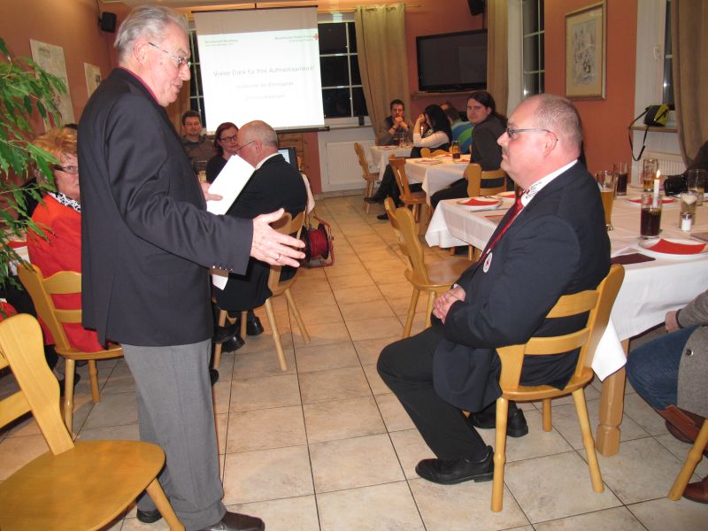 In Anschluss ehrte Herr Dr. Goldbrunner gemeinsam mit Herrn Karl Puschmann zahlreiche langjährige Mitglieder, die meisten leider wegen Krankheit in Abwesenheit wie Herr Dr. Erich Wittmann, der für 50 Jahre als Bereitschaftsarzt ausgezeichnet wurde.
