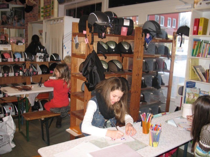 Von Mittwoch, den 13. Februar bis Freitag, den 15. Februar luden die beiden Inhaberinnen des Pferdesport Bumerang in Schweitenkirchen Birgit Damnick und Stephanie Krüger nicht nur die großen Kunden zum Winterschlusseinkauf mit Schnäppchenjagd ein, sonder sie organisierten auch für die kleinen Besucher viele tolle Attraktionen in der eigens eingerichteten Bastelecke. Dort wurden viele schöne Accessoires und Kunstwerke rund ums Pferd gebastelt. Unter anderem kreierten die kleinen Künstler Pferdeanhänger aus Ton, Faltpferdchen aus Papier und wunderschöne Pferdemandalas.