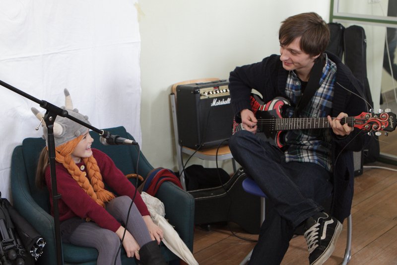 Demonstration von Experimenten im Chemiesaal (links), aber auch die Musik durfte nicht fehlen (rechts).