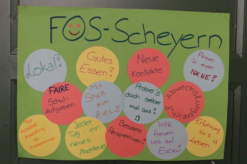 An der BOS Scheyern standen die Türen heute für Eltern und angehende FOS-/BOSler offen. Vor Ort konnte man sich über die Systeme der Fach- und Berufsoberschule Scheyern informieren und sich von 10:00 bis 14:00 für das kommende Schuljahr anmelden. Neben einer Vernissage mit Fotoecke waren diverse Vorlesungen Bestandteil der Veranstaltung.