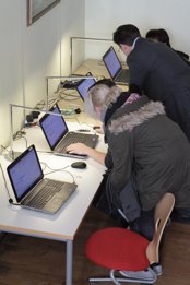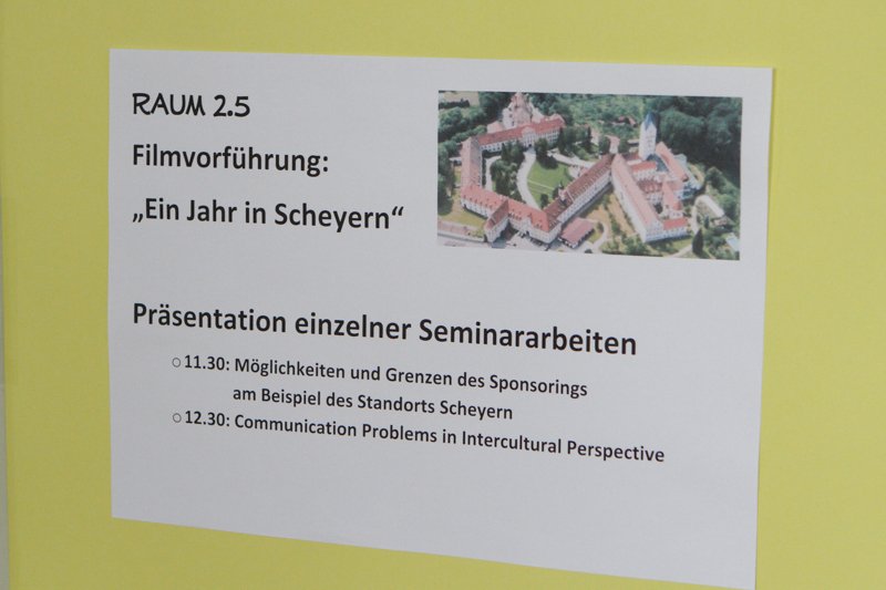 Der 1. Stock gehörte ganz der BOS – hierzu wurde das Direktorat kurzerhand zur BOS-Informationsstelle umfunktioniert. Im Sekretariat wurden Anmeldungen zum kommenden Schuljahr an der BOS entgegengenommen. Im 2. Stock hingegen stand eine fachkräftige Unterstützung bereit, um Fragen zum System der FOS und zur fachpraktischen Ausbildung zu beantworten. Auch hier gab es die Möglichkeit, sich einen der begehrten FOS-Plätze für das kommende Schuljahr in Scheyern zu sichern. Im 3. Stock konnte man sich live in die Haut eines Schülers hineinversetzen. Von 11:00 bis 12:30 wurde hier alle halbe Stunde in den Fächern Mathematik, Betriebswirtschaft und Recht, so wie Englisch zur Probe unterrichtet, was für angehende Schüler die Unterrichtsgestaltung durch die Lehrkräfte näher bringen sollte.