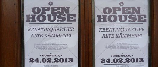 „Servus, sehr verehrte Leser“, steht in dem zusammenfassenden, hoch professionellen Heft, das die Arbeitsgemeinschaft „Kreativer“ zu ihrem „open house“ am Sonntag, den 24. Februar 2013, aufgelegt hat. „Alle Bewohner des ehemaligen Verwaltungsgebäudes haben für diesen Zweck kleine Beiträge zusammengestellt“, heißt es weiter. Tag des offenen Kreativquartiers wäre auch zu sperrig gewesen.