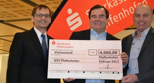 Schon den alten Griechen war bekannt, dass körperliche Ertüchtigung nicht nur Spaß macht, sondern den Menschen auch fit und gesund hält. Auch der Sparkasse Pfaffenhofen liegt der lokale Sport am Herzen und so überreichte der Vorstandsvorsitzende Norbert Lienhardt kürzlich eine Spende in Höhe von 4000 Euro an den MTV Pfaffenhofen.