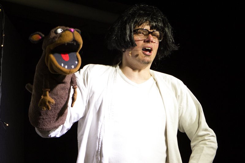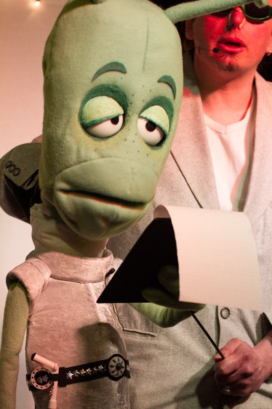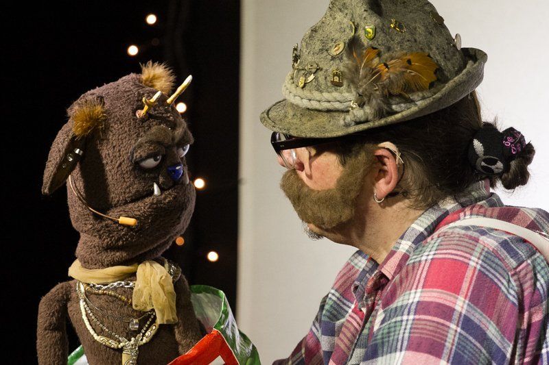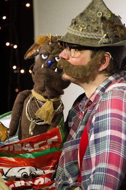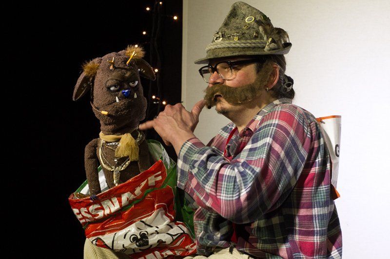 In vielerlei abstruse Figuren schlüpfte gestern der aus Schottland stammende Kabarettist Joe Heinrich bei seiner Uraufführung des aktuellen Showprogramms mit seiner Klappmaul-Puppentruppe. Die Intakt Musikbühne wurde so kurzerhand zum Puppentheater umfunktioniert, wo ein melancholische(r/s) Ali N., der Wolpertinger vom anderen Ufer und der süße Tod Maik ins Rampenlicht rückten.