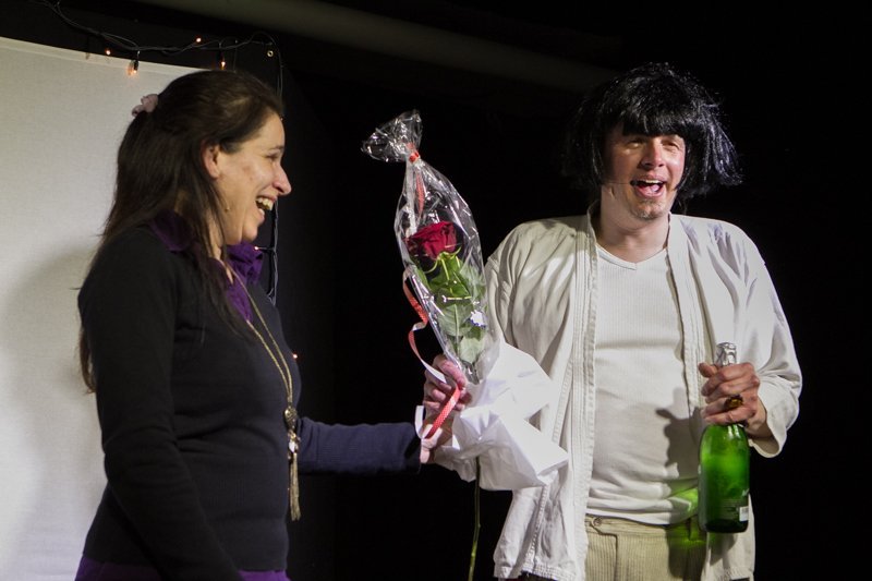 „Joe Heinrich?“ werden viele fragen „den kenn ich gar nicht“. Nach dem gestrigen Abend kennt ihn allerdings auch Pfaffenhofen. Der 1976 geborene, gebürtige Schotte heißt eigentlich Yorick Thomas Henry, kommt aus einer Künstlerfamilie und teilt das Schicksal, sein Erbe fortzuführen. So trat er schon mit jungen Jahren auf der Straße auf oder half im Zirkus aus und bediente sich später des Mediums der Comiczeitschriften und der Komödie. Heute schlägt er mit dem Puppenbau einen weiteren Weg in seiner Karriere ein und brachte zunächst den „kleinen Ude“ auf den Parkett, den er für Stoiber- und Seehoferimitator Wolfgang Krebs anfertigte. In Pfaffenhofen bestritt Heinrich seinen ersten Auftritt beim 5. Satirefassl im Stockerhof. Die Leute waren von seinem Showprogramm begeistert und wollten ihn wieder haben. Joe verneinte das Angebot mit dem Grund, dass er ein halbes Jahr für ein neuen Programm bräuchte. Sechs Monate später steht er auf der Intakt Musikbühne – oder auch nicht! „Willkommen zur Showtime mit Joe Heinrich“ ertönt es aus den Lautsprechern. „Gegen den ist Markus Lanz nur ein lahmes Haargelmodel“. Die Meute kriegt sich nicht mehr. Doch dann die schlechte Nachricht: Joe ist noch nicht da, dafür sollen vorher andere Künstler auf die Bühne. Gesagt, getan. Holgi (alias natürlich Joe Heinrich) klemmt sich das Schaf Dolly unter den Arm und schreitet auf die Bühne. Die Anspielung fällt hier natürlich auf Dolly das Klonschaf – im Intakt aber top gestyled mit Brille, Schminke, Perlenkette und einem – womöglich vom Klonen verursachten – überdimensionierten Euter. Holgi ist 25, auf der Suche nach einer zu ihm passenden Frau und ist vom Beruf Schäfer – äh, „Sheep account manager“. Die „Wunderdolly vom Kuhdamm“ hingegen möchte ihre Fähigkeiten in einer Hellseh- und Hypnoseshow beweisen. Aus dem Publikum soll jemand seinen Vornamen auf ein Blatt Papier schreiben, Dolly sieht dabei nichts. „Kerstin“ wird notiert. Dolly antwortet: „Nitsrek!“. Beim erraten, wann denn dieses Jahr Weihnachten wäre, muss Holgi allerdings ihre „23“ auf „24“ hochkorrigieren. Zum Schluss gibts Werbung, denn Dolly und Holgi haben auch ein Album rausgebracht: „Dolly und Holgi – Schafer Kuschelrock“.