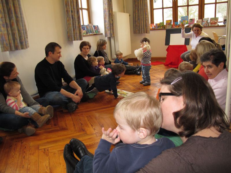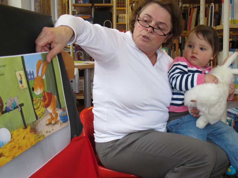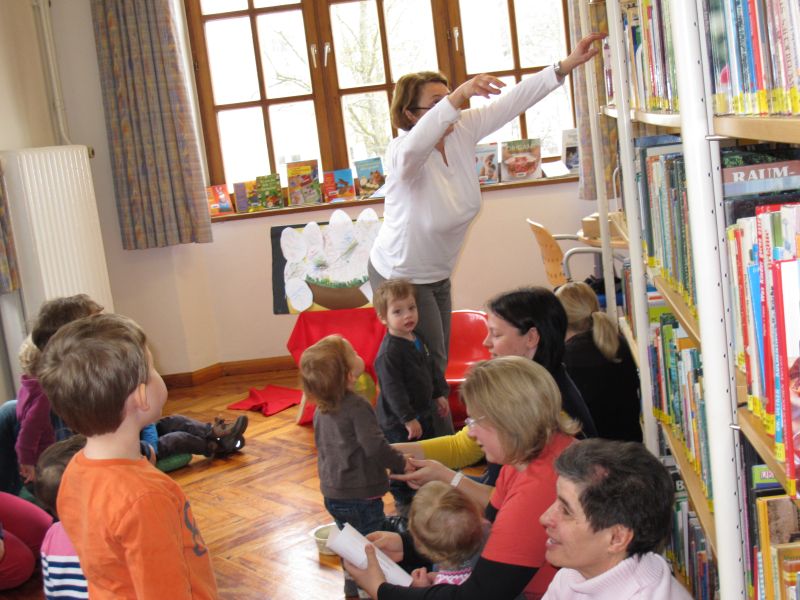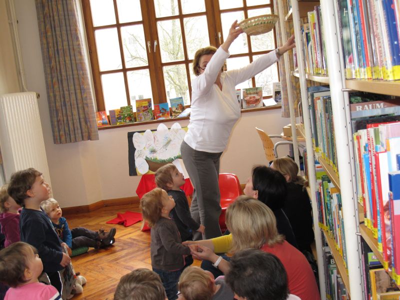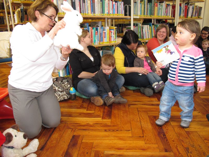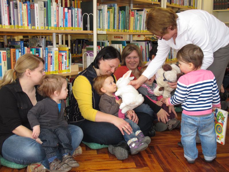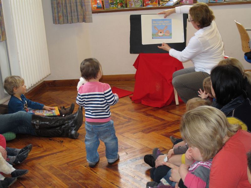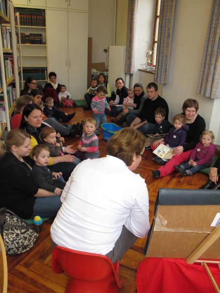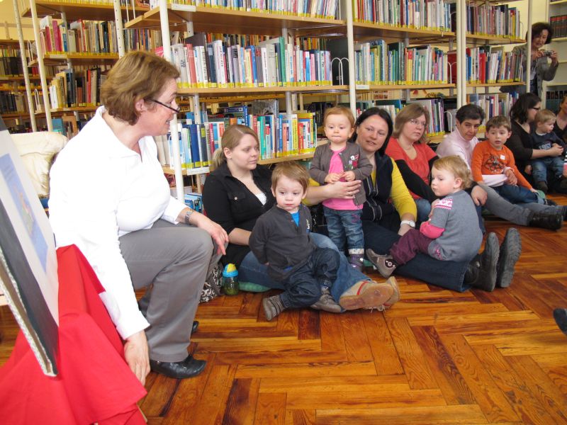 Wieder einmal fand speziell für Krabbelkinder eine Vorlesestunde in der Stadtbibliothek statt, und Frau Renate Fuchs und Frau Brigitte Berg hatten sich wie immer ein spannendes, kleinkindgerechtes Programm ausgedacht.