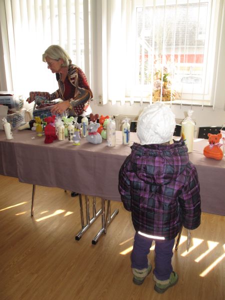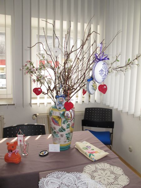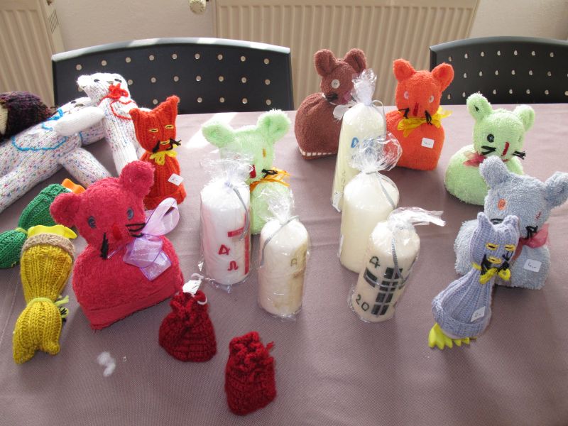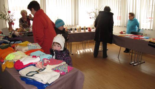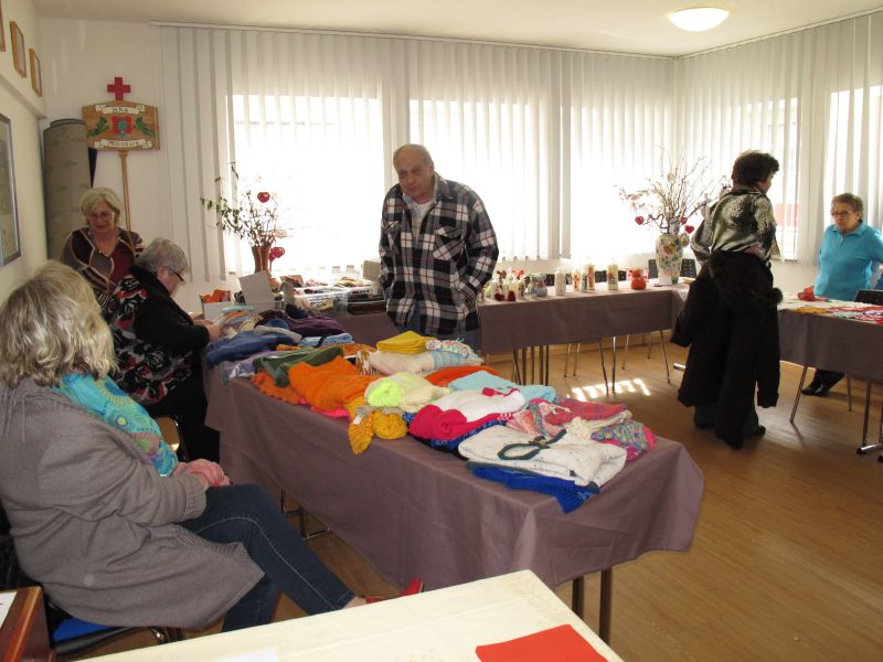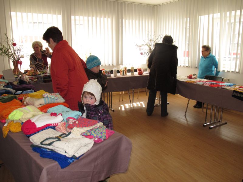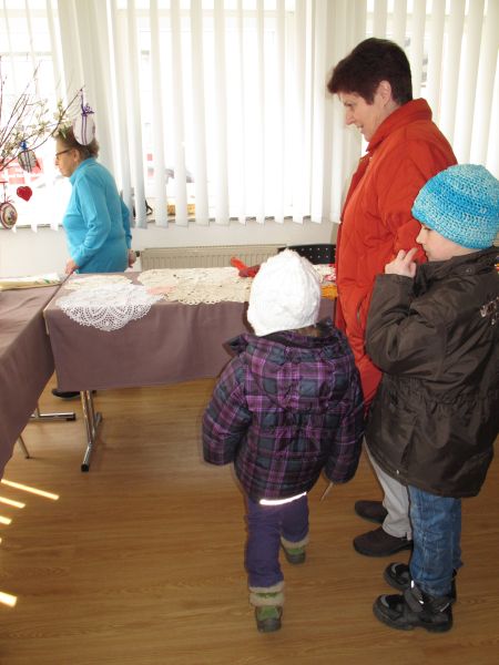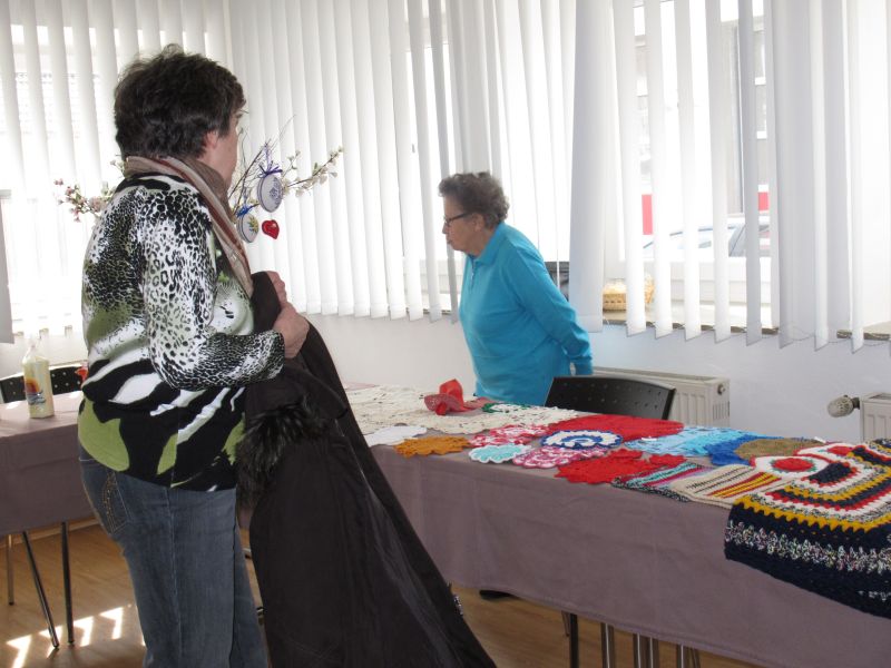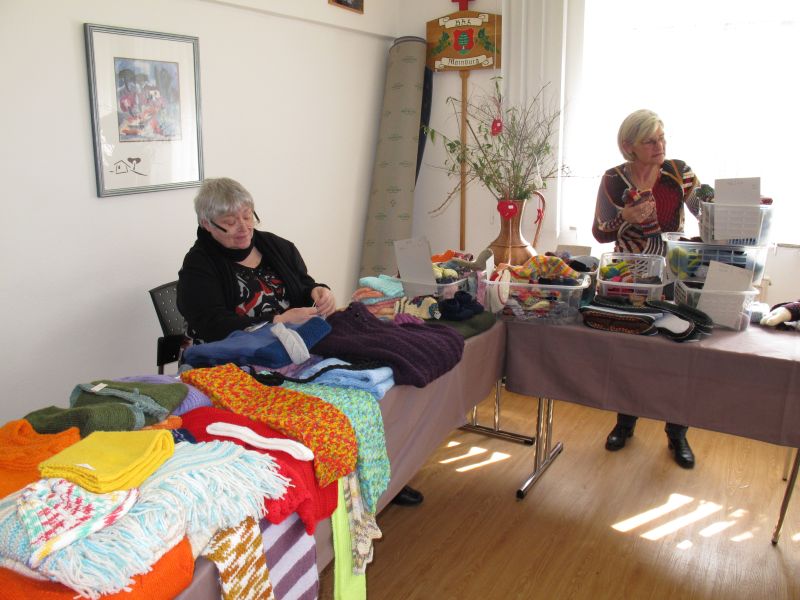 Zu den Rennern dieses Jahres gehörten die gehäkelten Anhänger und die bestickten Eier für den Osterstrauß. Aber auch die selbstgestrickten Schals, Handschuhe, Mützen und Socken wurden an den „Mann“ gebracht, da es ja nicht so ausschaut, als ob es noch irgendwann mal wärmer wird.