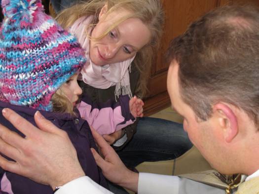 Bei eisigen Temperaturen aber herrlichem Sonnenschein marschierte die lustige Gesellschaft etwa eine viertel Stunde zur Kirche und wurde dort schon von Kaplan Dirk Rolland erwartet. In der kurzen Andacht schlüpften drei Kinder in die Rolle der Frauen, die das leere Grab von Jesus entdeckten.