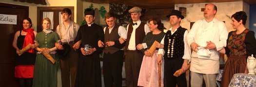 Eines ist klar: Wenn in Niederlauterbach die Theatergruppe einlädt, dann ist das ganze Dorf auf den Beinen und so war auch bei der Premiere vom „blauen Kruag“ der Saal im Gasthaus Reich bestens gefüllt. Rund 150 Gäste waren gespannt, was die Truppe um Regisseur Christian Forsthofer dieses Mal auf die Bühne zaubert.
