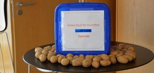Insgesamt verkochte Alfred Kügel 40 Kilo Rohkartoffel und bewirtete damit 47 Mitarbeiter der Bank, allein 20 Liter Suppe waren darunter, drei große Pfannen Bratkartoffeln. Daneben gab es vier Bleche Ofenkartoffeln und fünf Liter Kartoffelgulasch sowie Salz- und Pellkartoffeln mit verschiedenen Salaten und Dips.