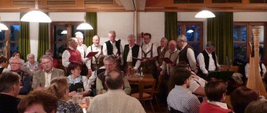 Ein gelungener Abend der nach Fortsetzung ruft, zu den Mitwirkenden gehörten die bekannte Tanzlmusi Maschant aus der Hallertau und die 5 Schmied-Deandl. Für ruhigere Weisen sorgte die Harfenistin Beate Fürbacher. Aus Wolnzach kam Alois Maier mit seiner Gitarre und hat mit seinen selbst geschriebenen Liedern den Abend mehr als bereichert. Umrahmt wurde die Veranstaltung von der Männersinggruppe der NaturFreunde unter der musikalischen Begleitung von Elfriede Heger. Die Moderation des Abends lag wie immer in den bewährten Händen von Franz Nischwitz.