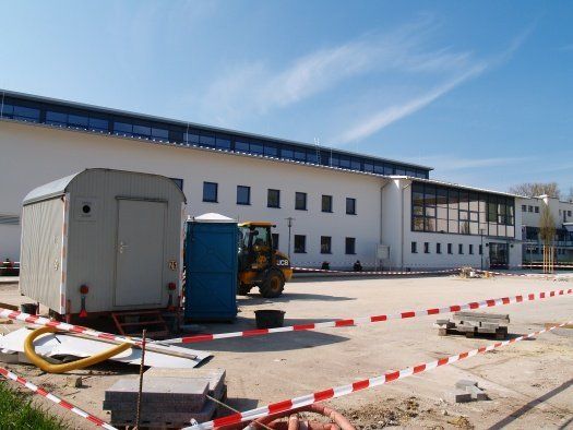 Jetzt ist sie fertig, die neue Dreifachturnhalle an der Schule in Nandlstadt. Wie geplant, kann sie jetzt ab dem Frühjahr für den Schul- und Sportbetrieb genutzt werden, genauer gesagt ab dem 29. April 2013. Die Halle selbst ist komplett fertig, nur im Außenbereich wird noch gearbeitet, aber hier ist auch ein Ende in Sicht.