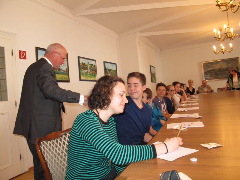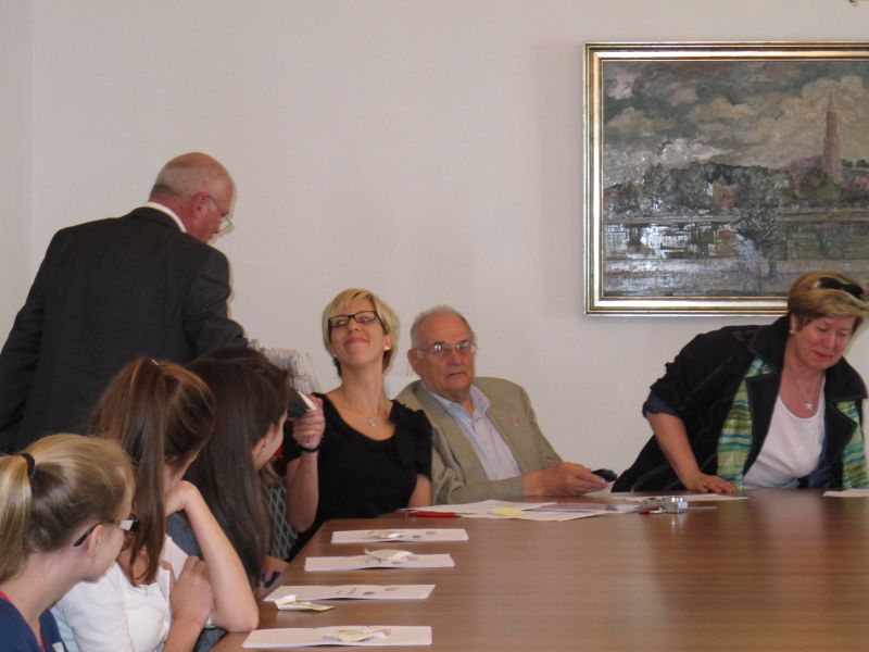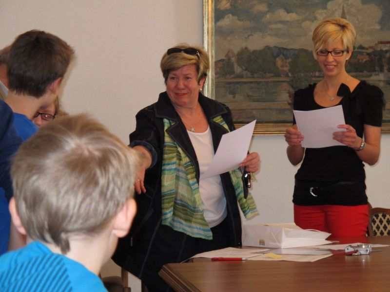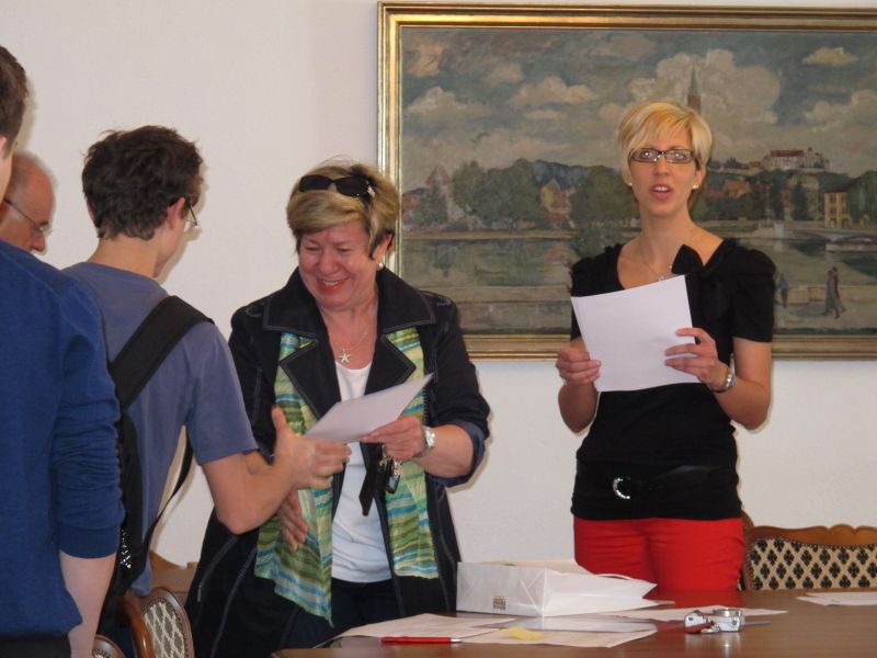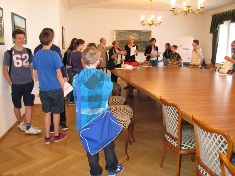 Um 12.30 Uhr wurden die jungen Praktikanten im Rathaus zu einem Feedback erwartet. Frau Hannelore Langwieser, 2. Bürgermeisterin und Herr Edgar Fellner 3. Bürgermeister begrüßten sie und ließen sich von ihrem „Arbeitstag“ berichten. Bürgermeister Josef Reiser war leider verhindert, doch auch er schüttelte schnell jedem einzelnen die Hand, bevor zum nächsten Termin hetzte.