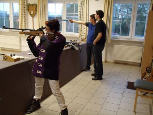Die Erwachsenen kämpften in den Kategorien Luftpistole und Luftgewehr. Beim Luftgewehr siegte Thomas Paril, Zweiter wurde Manuel Kellermann und Dritter Gerhard Herrmann. In der Kategorie Luftpistole ging der Sieg an Walter Rebmann, zweiter wurde Gerhard Herrmann und Dritter Bernd Brosius. Und für die Schützenscheibe, für die nur ein einziger Schuss abgegeben werden durfte, machte Sonja Weniger das Rennen. Ihr Name wird jetzt in dieser Scheibe verewigt.