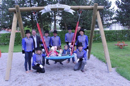 Sehr zur Freude aller Anwesenden dauerte es auch nicht lange, und die Kleinen entdeckten das neue Highlight. Mit viel Schwung wurde und wird dort unter dem Banner des Zirkus Tonelli geschaukelt. „Diese Schaukel passt wirklich hervorragend in unser Bad“, so der Bürgermeister.