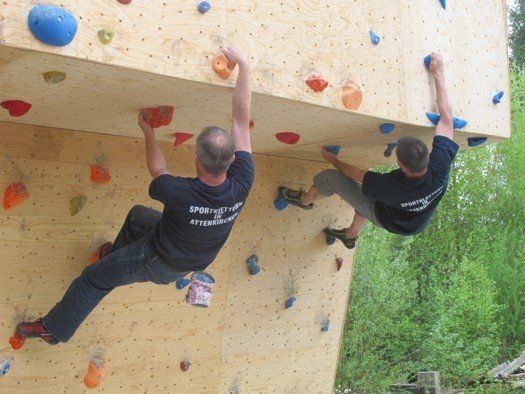 Am vergangenen Sonntag wurde in Attenkirchen die Außenkletteranlage eröffnet. Fertiggestellt wurde sie bereits im November, nach dreivierteljähriger Bauzeit, in Alleinarbeit durch den Chef der äußerst rührigen Kletterabteilung des SPVGG Attenkirchen, Martin Bormann. Bei angenehmen Wetter konnte jeder ausprobieren, es gab Grillfleisch und Getränke sowie mehrere Slacklines zum balancieren.