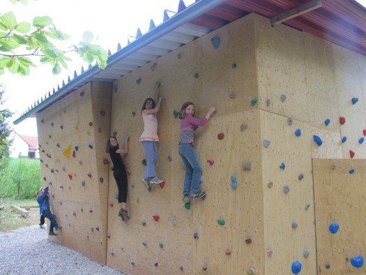 Nachdem bereits seit 3 Jahren in der ehemaligen Tennishalle eine riesige Kletterwand besteht, an der man das Klettern unter Aufsicht und mit Abseilen von der Pike auf lernen kann, gibt es nun auch einen Außenbereich. Dort kann man bis Sprunghöhe selbst herumsteigen, es geht allerdings auch, einen Überhang zu bewältigen. Kinder und Jugendliche aus der ganzen Umgebung sind eingeladen, gegen einen kleinen Obulus, dort ihre Freizeit sinnvoll zu verbringen.