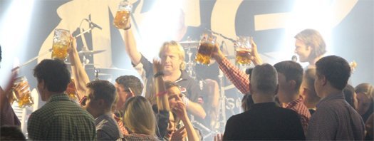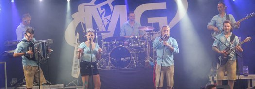 "In Pfaffenhofen haben wir schon gespielt, aber hier in Reichertshausen sind wir zum ersten Mal." stellte Frontmann Tom zu Beginn des Auftritts der Erdinger Band fest. Und dann legten sie los: kein Warmspielen, keine Spur von Anlaufphase, es dauerte nicht einmal 5 Minuten, da standen die ersten Partygäste schon auf den Bierbänken und es gab kein Halten mehr.
