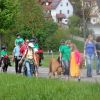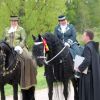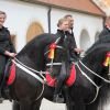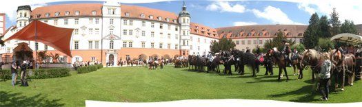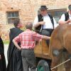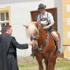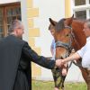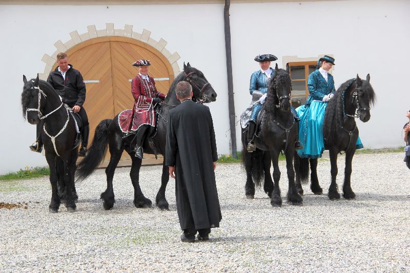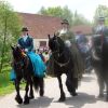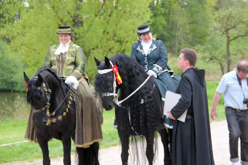 Vorbei an den Scheyrer Weihern ging es über den Scheyrer Berg in den Klosterhof, wo der Abt - unterstützt durch Pater Benedikt - die Pferde (kleine Braune ebenso wie große Schwarze) und ihre Besitzer in feierlichem Rahmen segnete. Es mögen wohl schließlich so um die 200 Gäste gewesen sein, die diesem Gottesdienst unter freiem Himmel beiwohnten und sich an dem wunderschönen Bild erfreuten.