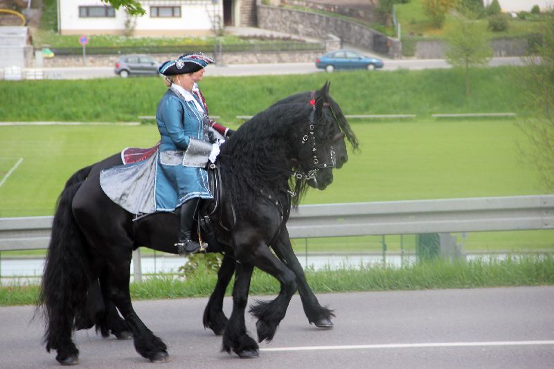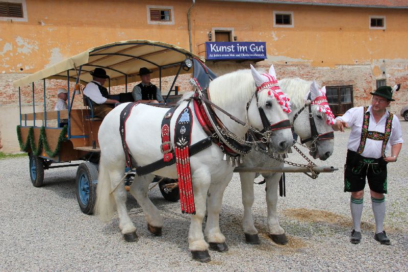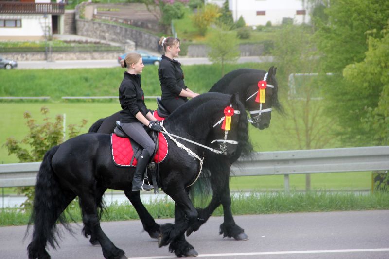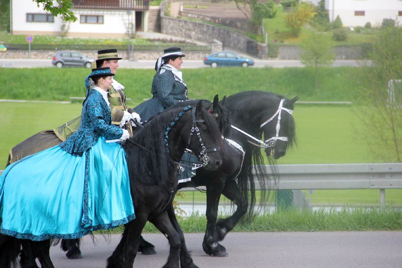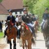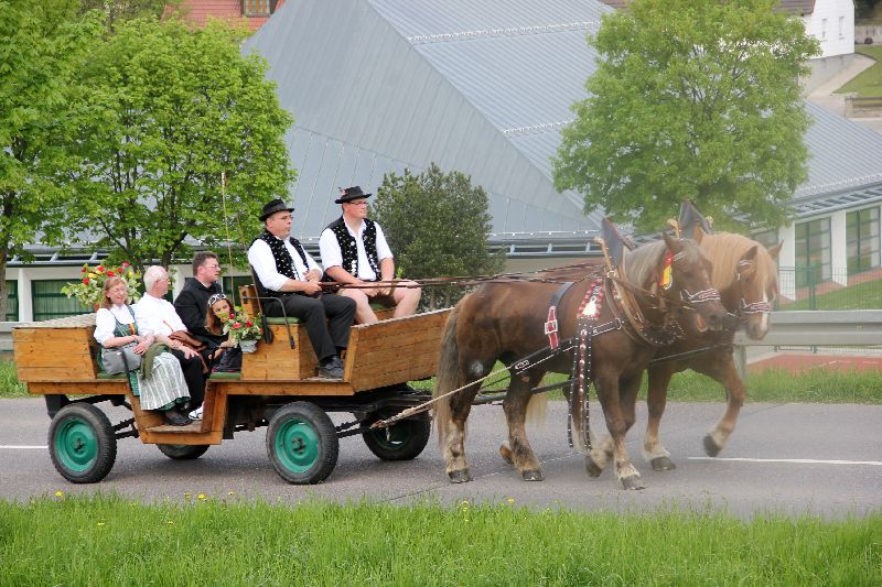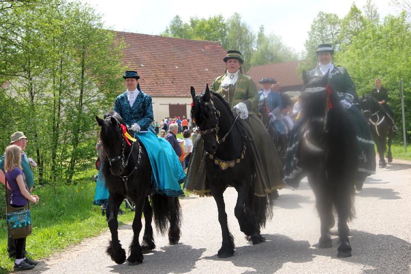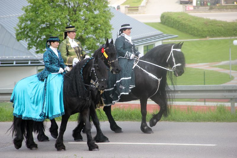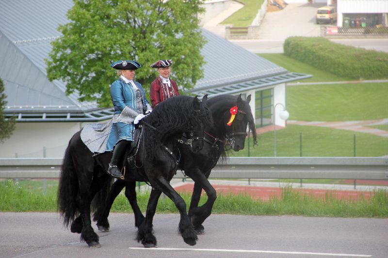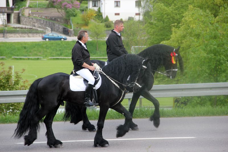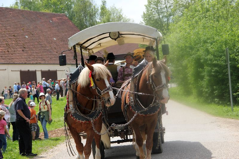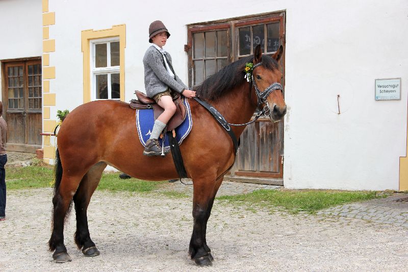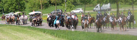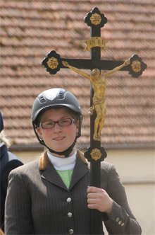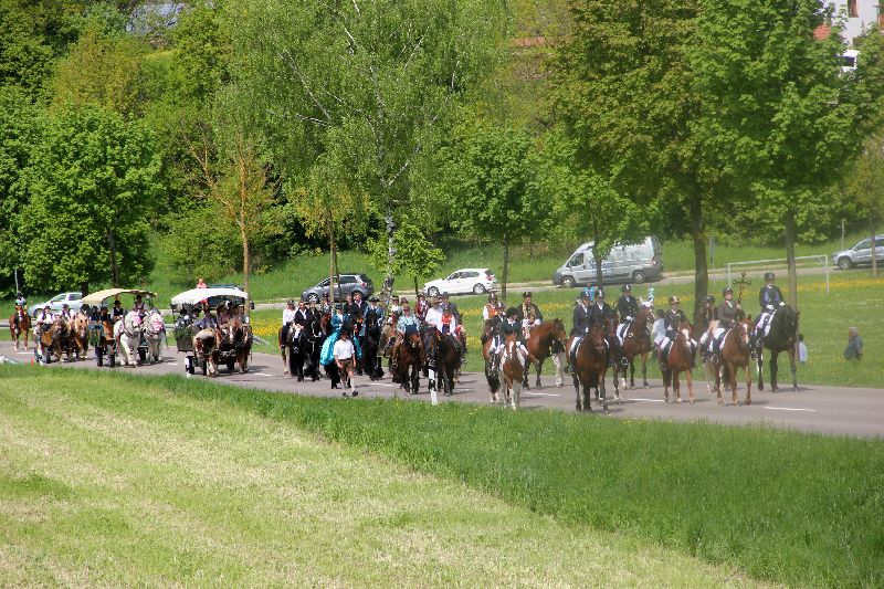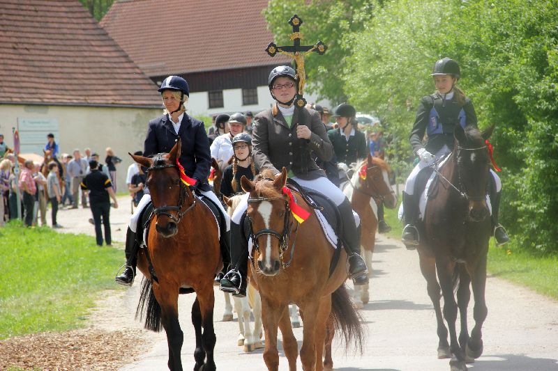 Auch wenn es heuer trotz des kleinen Jubiläums weniger Teilnehmer gab als vergangenes Jahr, so erlebt der Besucher des Scheyrer Kreuzritts jedes Mal aufs Neue ein wunderschönes Bild. Ca. 40 Reiter hoch zu Ross und 4 Gespanne zogen vom Prielhof an den Weihern vorbei hoch zum Klosterhof, wo Pferde und Reiter ihre Segen empfingen.