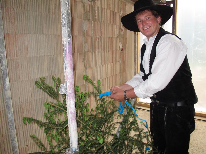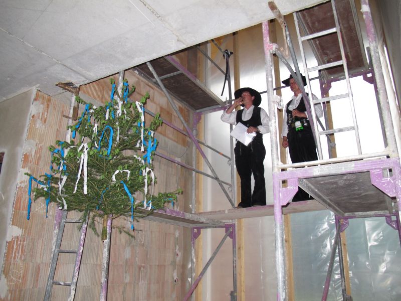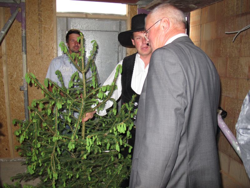 Laut Herrn Reiser „beschwerten“ sich schon die Arbeiter, weil die geplante Einweihung, die eigentlich schon im Februar hätte stattfinden sollen, immer wieder verschoben wurde. Sie „drohten“ schon anstatt des Tannenbaums einen Besen anzubringen, der immer dann zum Einsatz kommt, wenn keine Hebefeier stattfindet.