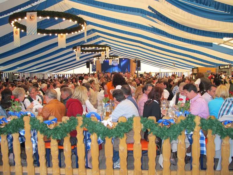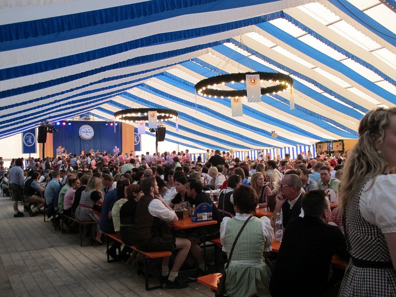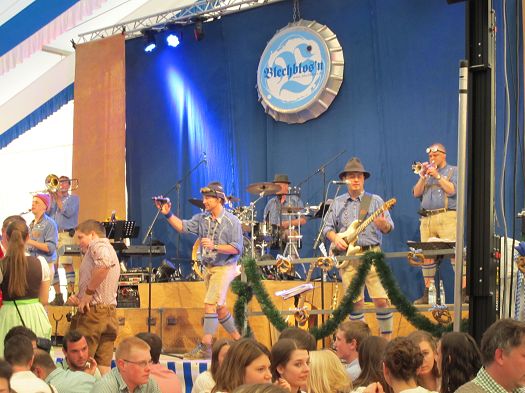 Und am Abend lud die beliebte Band "Blechblosn" zur Party ins überfüllte Bierzelt, sogar die Plätze davor im Freien waren Mangelware. Vor allem die Jugend, fast alle in Dirndl oder Lederhose, feierte begeistert mit, in Wies`nmanier wurde auch auf den Bänken mitgetanzt und - gesungen.