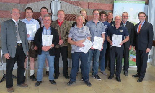 Landrat Martin Wolf freute sich sehr darüber, dass sich insgesamt 34 Orte zur Teilnahme an dem Wettbewerb angemeldet haben, „wobei es noch viel mehr Maibäume im Landkreis gibt,“ wie der Landkreischef betonte. Das sei gelebtes Brauchtum. Wer dies unverfälscht an die Jugend weitervermittle, solle honoriert werden. „Schöne Maibäume sind eine Zierde für den gesamten Landkreis. Der Aufwand und die Liebe zum Detail sind vielfach bewundernswert“, so der Landkreischef. Auch die Maibaumjury (Herr Roland Gronau, Herr Heribert Reiter und Herr Heinz Huber) hob die großen Bemühungen in den Landkreisgemeinden zur Pflege der „Maibaumkultur“ hervor, die sie bei ihrer Rundfahrt durch den Landkreis begutachten konnten. Sie bewerteten die „Kultbäume“ nach verschiedenen Gesichtspunkten, so zum Beispiel Standort, Anzahl und Gestaltung der Tafeln, Grün- und Blumenschmuck, Maibaumspruch, Sockelgestaltung bzw. Erdbefestigung und Gesamteindruck. Auch auf die richtige Anbringung der weiß-blauen Fahnen und Fähnchen (blau auf der „Stammseite“) wurde geachtet. Für jedes Kriterium sind Punkte vergeben worden.