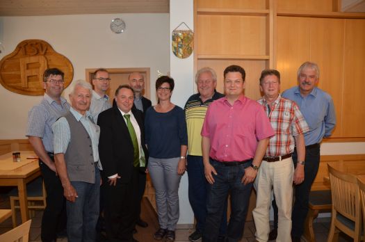 der eneu Vorstand(v.l.): Johann Großhauser, Manfred Hösl, Peter Keck, Gast Markus Käser, Alfred Gabriel, Monika Daniel, Josef Kling, Elvis Schwarzmair, Wolfgang Seidl, Bürgermeister Dieter Huber (Foto A.Raths)