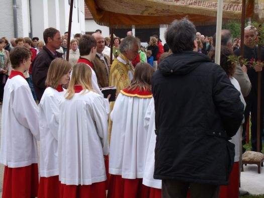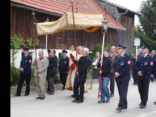 An vier Altären machte die Prozession Halt mit Gebet und Gesang. Nach der Prozession durch die Gemeinde versammelten sich die Gläubigen wieder in der Kirche zum Abschlussgebet. Und danach wurde dann im Feuerwehraus kräftig mit einem Weißwurst-Frühstück gefeiert. Wobei die Gläubigen schon in der Kirche vor dem Prozessionszug scherzhaft ermahnt wurden, gemessenen Schrittes, ohne zu überholen, die Prozession zu gehen, „denn die Weißwurst wird dadurch nicht früher fertig“.