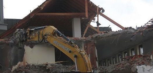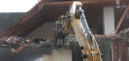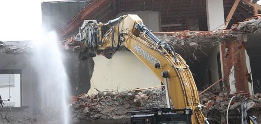 Ein Neubau war in diesem Fall wirtschaftlicher als eine Sanierung, daher gehen die Bagger schnell und mit großer Wucht in den Gebäudeteil. In wenigen Tagen wird nur noch eine Baulücke sichtbar sein, bevor der Neubau noch in diesem Jahr beginnt.