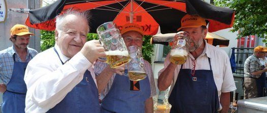 Hingegangen sind viele, beim Aufbau half die freiwillige Feuerwehr und zu einer deftigen Brotzeit oder selbstgebackenem Kuchen bekennt sich der geneigte Besucher gerne. Die katholische Jugend hatte eine Kirchturmersteigung organisiert und wollte auch beim „Biertragel Stapeln“ hoch hinaus. Kasperltheater, Hüpfburg und Malecke für Groß und Klein beschäftigten den Nachwuchs, die Erwachsenen konnten gemütlich unter dem großen Lastenfallschirm im Schatten der Stadtkapelle lauschen. Der Schdodt Max dirigierte die „Alten Kameraden“ und Stadtrat Schmuttermayr sorgte höchstpersönlich für den flotten Getränkenachschub.