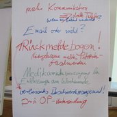 Die zwei anderen Gruppen forderten weitere Zusatznutzen u.a. eine bessere Außenkommunikation der Ilmtalklinik. Andererseits müssen der Datenschutz und das Arztgeheimnis gewährt bleiben. Die Reklamationen der Patienten über die Behandlung im Krankenhaus sollten die Haus- und Fachärzte der Ilmtalklinik möglichst umfassend mitteilen. Das nütze viel mehr als von den Patienten Beurteilungsbögen ausfüllen zu lassen, wobei nur jeder 5. dazu bereit ist.
